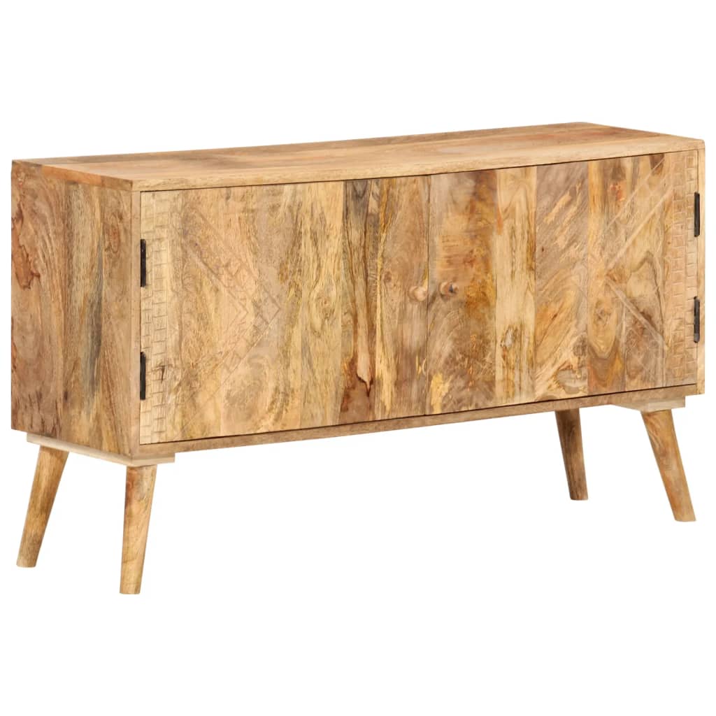 Tämä senkki on valmistettu kiinteästä mangopuusta, joten se on vakaa ja kestävä. Tukevalle pöytätasolle voi asettaa monenlaisia koriste-esineitä kuten maljakoita tai ruukkukasveja. Suuret kaapit tarjoavat runsaasti säilytystilaa, jotta voit pitää kaikenlaiset esineet järjestyksessä. Hienovaraisesti kaiverretut kuviot antavat senkille ainutlaatuisen ulkonäön. Rakentamisen jokainen työvaihe hiomisesta maalaukseen ja lakkaukseen on suoritettu erittäin huolellisesti. Kokoaminen on helppoa.