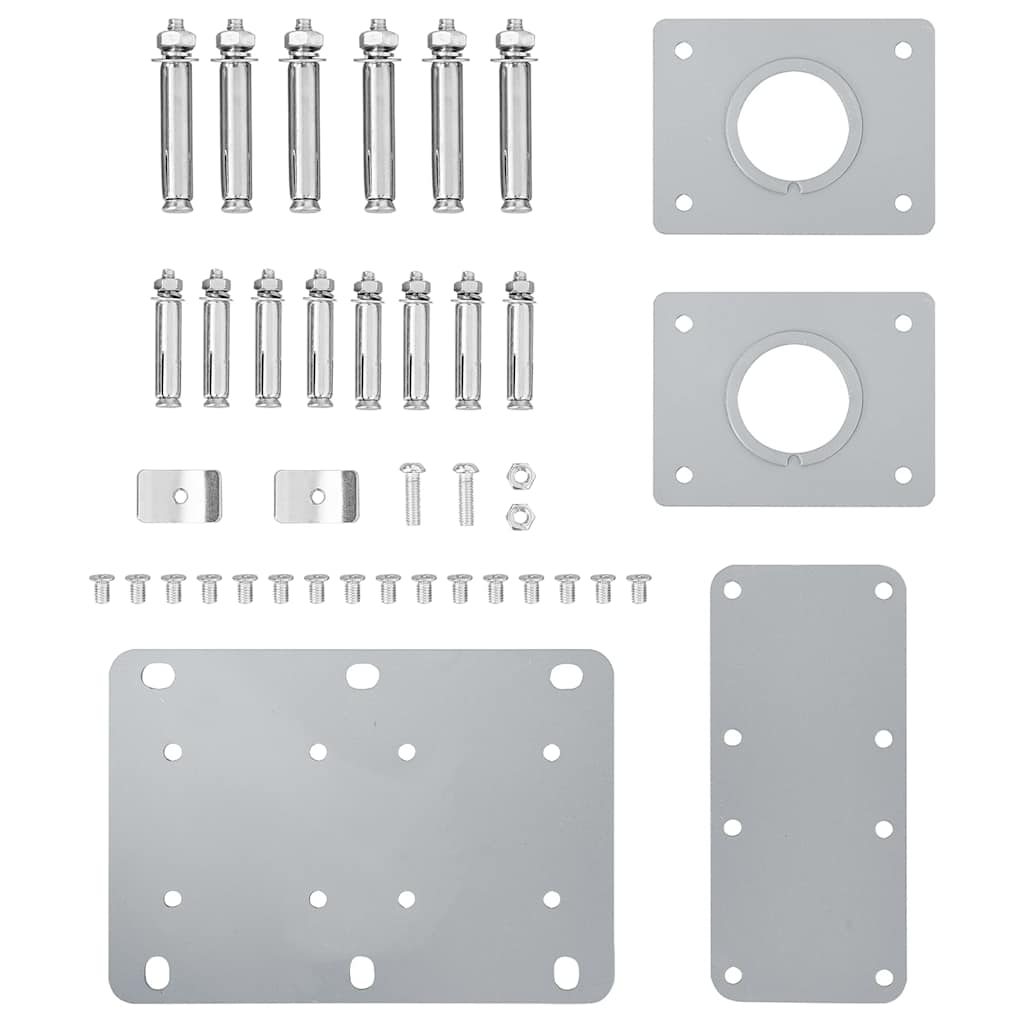 Toimitus sisältää myös asennustarvikkeet ja 2 pylvästä.