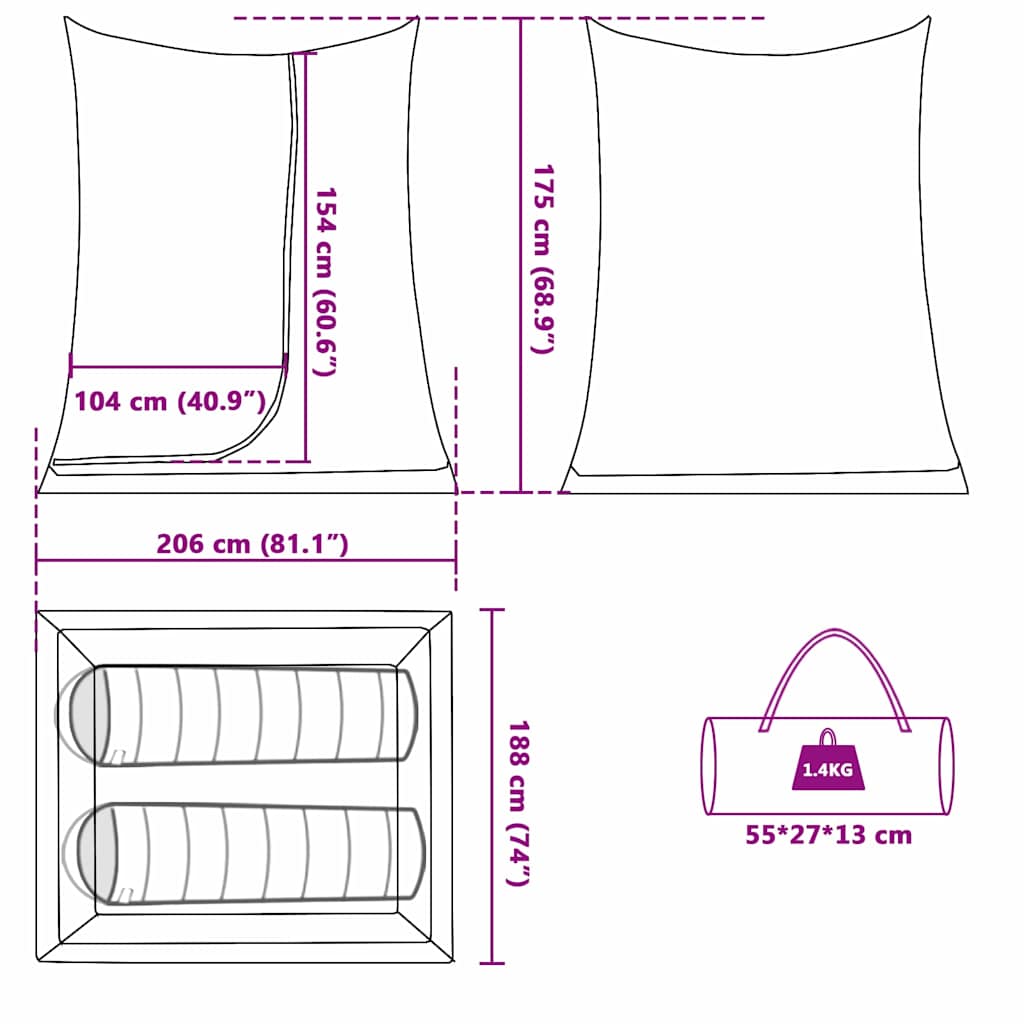 • Suositellut käyttötarkoitukset: Tämä teltta on suunniteltu leirintään, vaelluksille ja muihin ulkoilmaelämyksiin. Sen kevyt ja helposti käsiteltävä muotoilu tekee siitä unelmatuotteen kantaa ja pystyttää lähes missä tahansa, vehreiltä metsäleirintäalueilta rauhallisiin rantoihin. Se on hyvä valinta niin yksittäisille seikkailijoille kuin pienille ryhmille, jotka etsivät luotettavaa suojaa ulkoiluvälineissään.