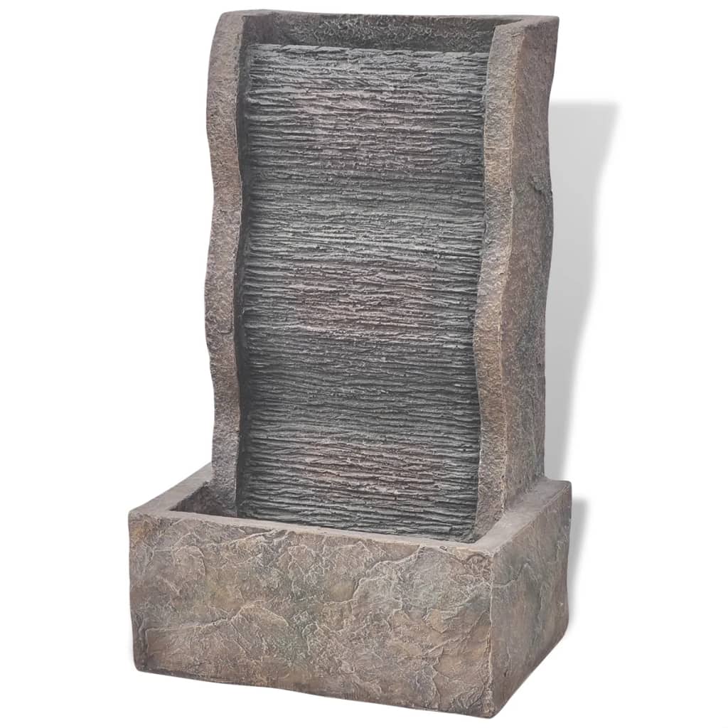 Tämä upea suihkulähde sopii mihin tahansa huoneeseen. Siinä on kolmikerroksinen vesiputous ja se on LED valaistu, se on todella tyylikäs, erityisesti yöllä. Koska se on valmistettu hartsiyhdisteestä, niin se on UV-kestävä, siksi se on kestävä ja pitää värinsä vaikka suorassa auringon valossa. Useat virrat ja putoavan veden ääni luo rahoittavan tunnelman. Mukana tuleva pumppu takaa turvallisen ja luotettavan toiminnan.