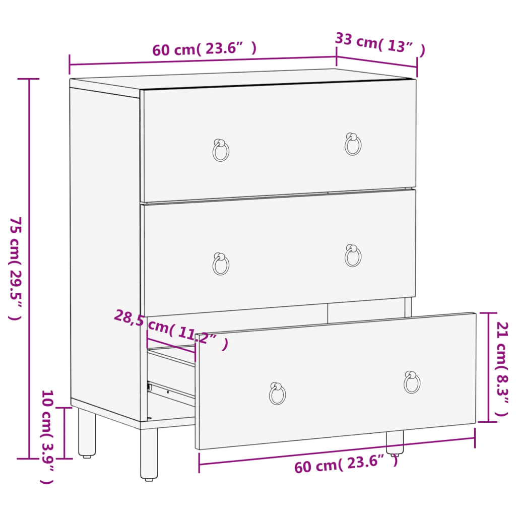 Sivukaappi 60x33x75 cm täysi mangopuu
