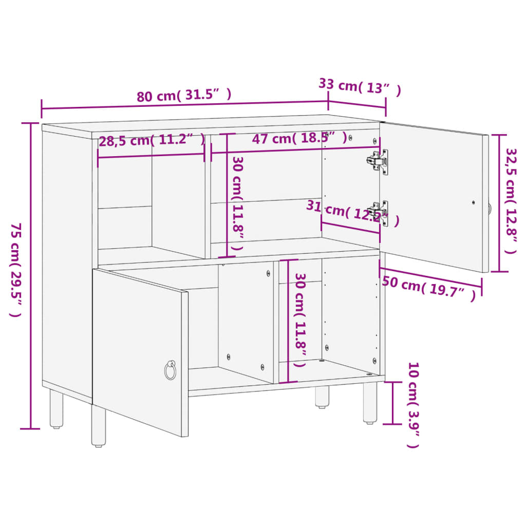 Sivukaappi 80x33x75 cm täysi mangopuu