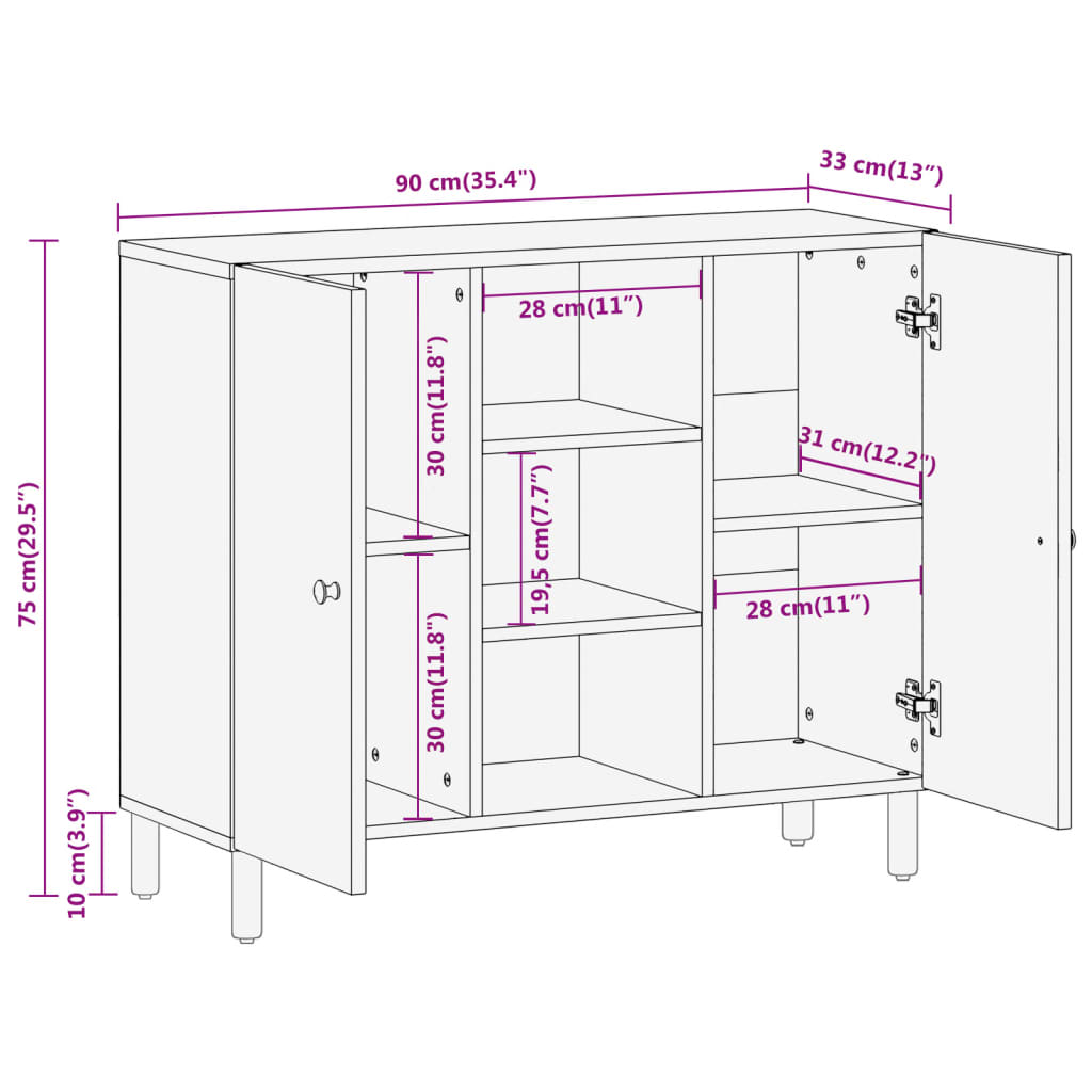 Sivukaappi 90x33x75 cm täysi mangopuu
