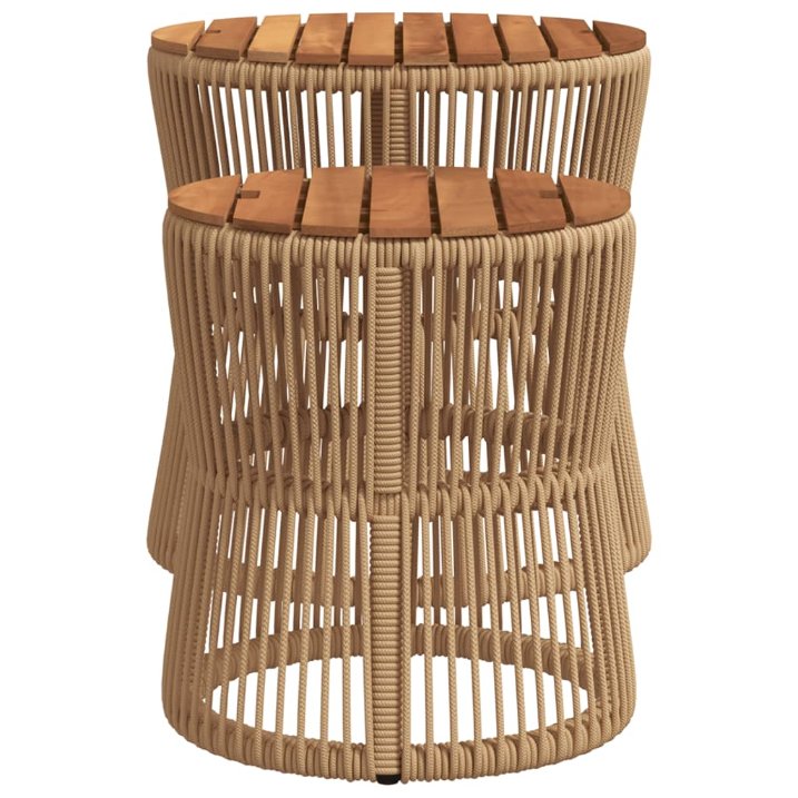 Sivupöydät 2 kpl puinen pöytälevy beige polyrottinki