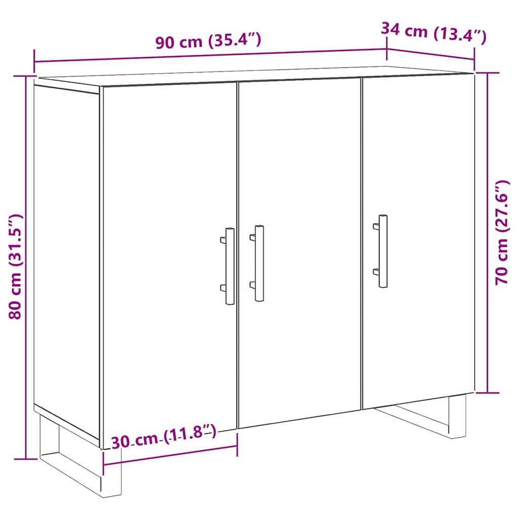 Sivupöytä 3 ovella Musta Tammi 90x34x80 cm Tekninen puu