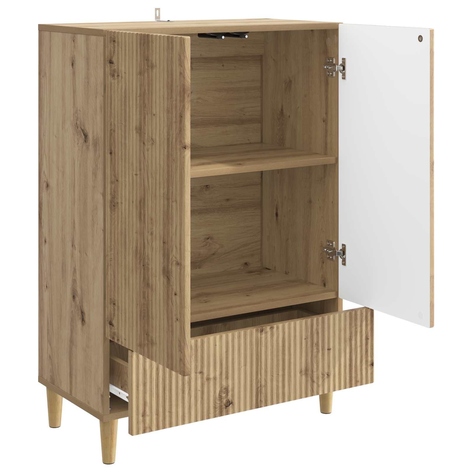 Tämä käytännöllinen buffetti- ja sivupöytä on täydellinen valinta niille, jotka haluavat yhdistää toimivuuden ja tyylin kotona. Monikäyttöinen muotoilu tekee tästä upean lisää ruokasaliin, olohuoneeseen tai jopa kotitoimistoon – se sulautuu kauniisti mihin tahansa sisustukseen. Suunnittelussa on onnistuttu vangitsemaan tyylikäs mutta rento ilme, jossa käytännöllisyys ja viehätysvoima ovat tasapainossa. Tämä lisäys pystyy hyvin sopeutumaan erilaisten makujen mukaan, mikä tekee siitä ihanteellisen valinnan kaikille, jotka arvostavat järjestystä mutta eivät halua tinkiä tyylistä.
