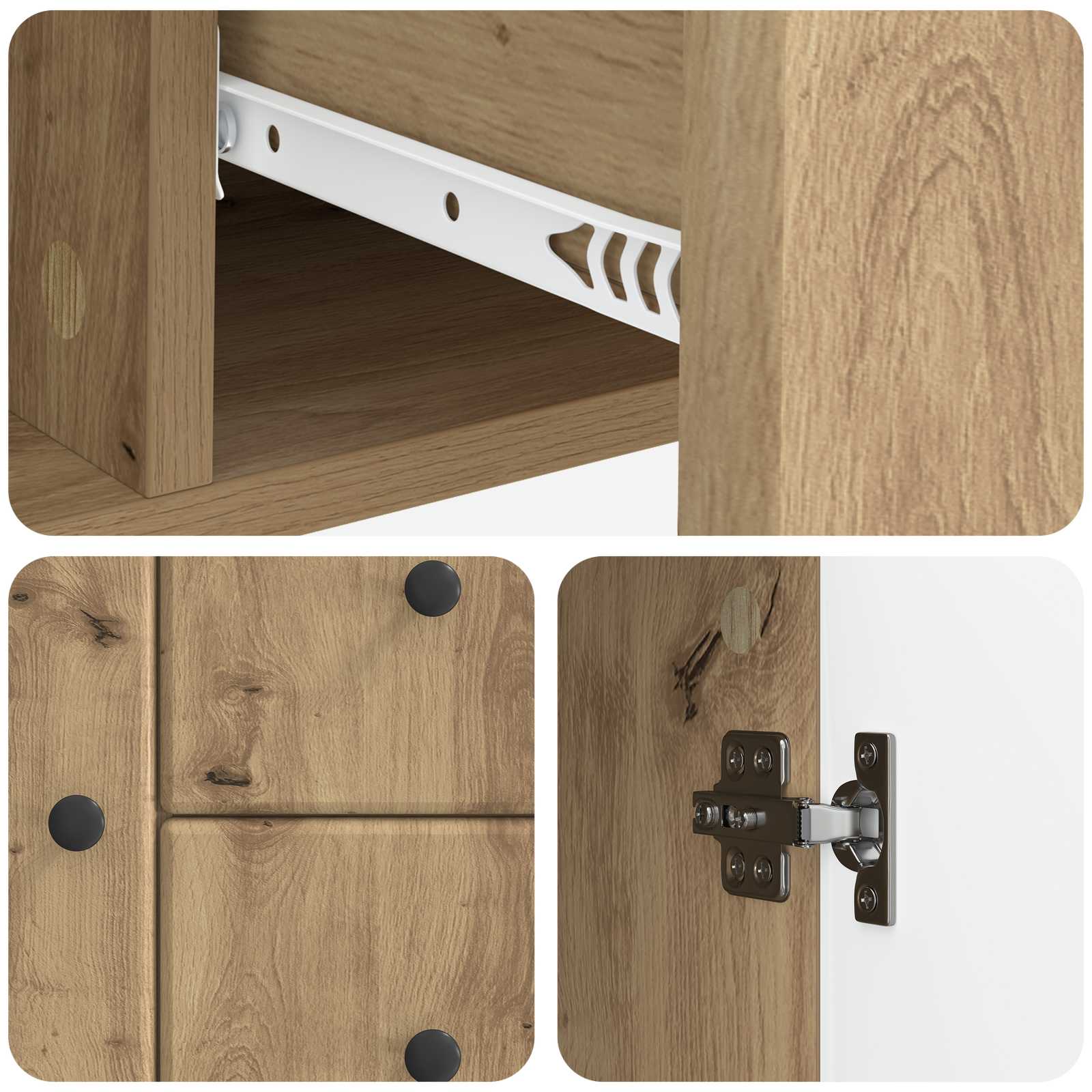 • Runsaat mitat: Riippumatta kotisi koosta tai tavaroiden määrästä, tää tilava sivupöytä täyttää kaikista tarpeista. Sen tilava rakenne pitää paikat siistinä, ja se on täydellinen tilojen järjestelyyn. Tallenna kaikki tarpeelliset tavarat jokapäiväisistä ruoista asiantuntevasti suunniteltuihin lokeroihin.