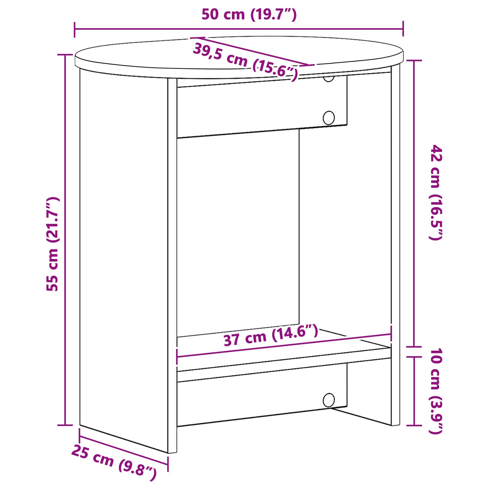 • Hienostunutta teknistä puuta: Sivupöytä on tehty teknisestä puusta, joka jäljittelee oikean puun ilmettä, samalla tarjoten hyviä kustannuksia ja kestävyyttä. Sen sileä pinta tuo ripauksen eleganssia, joka sopii erilaisiin sisustustyyleihin ja toimii katseenvangitsijana missä tahansa huoneessa.