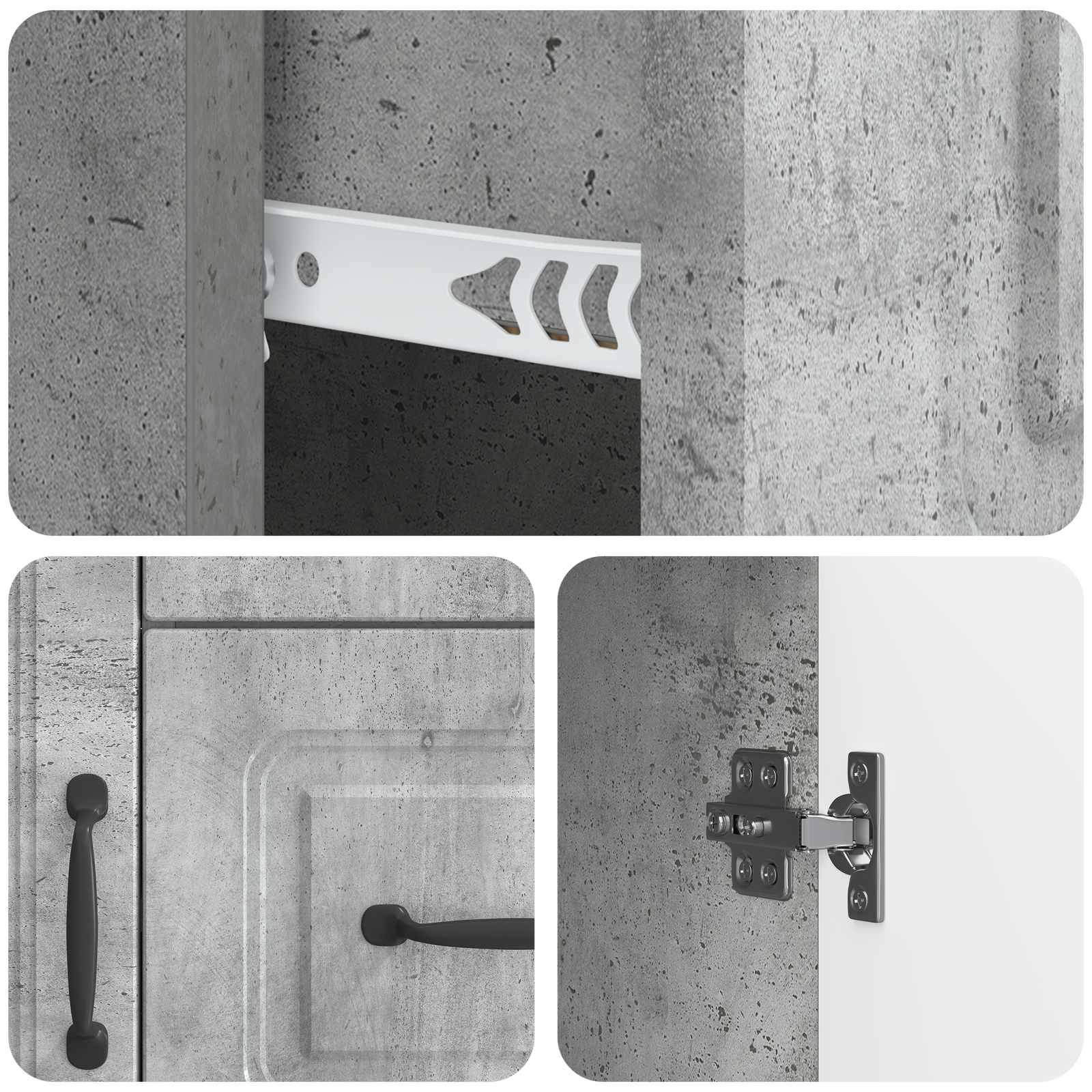 • Tyylikkäät vetimet – Elegantit kaarivetimet yhdistää toiminnallisuuden ja modernin estetiikan. Vetimet tarjoaa mukavan otteen, joka tekee ovien ja laatikoiden käytöstä sujuvaa.