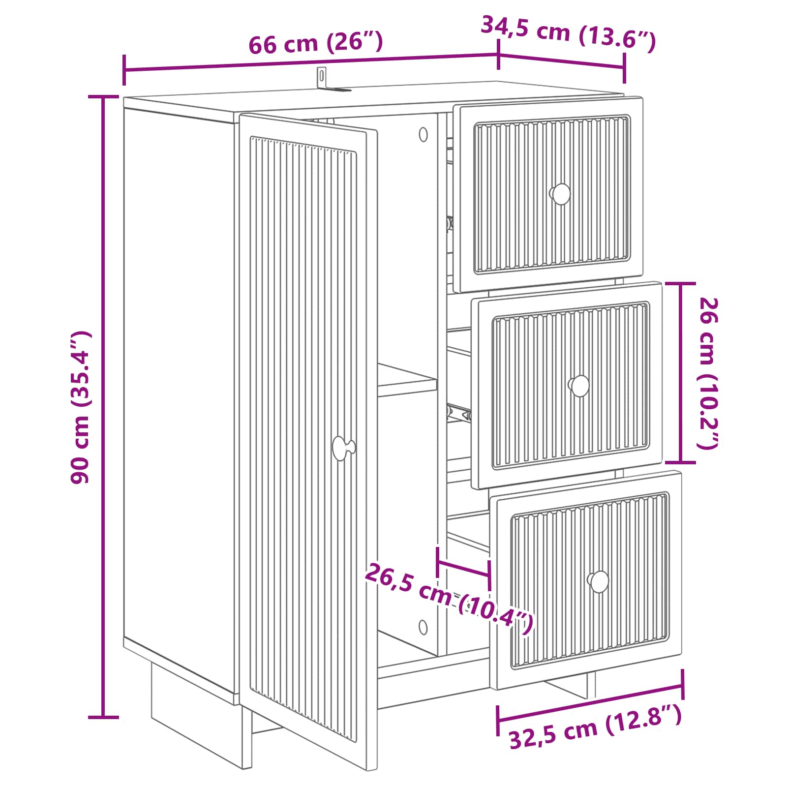• Yleiset mitat: 66 x 34,5 x 90 cm (P x L x K)