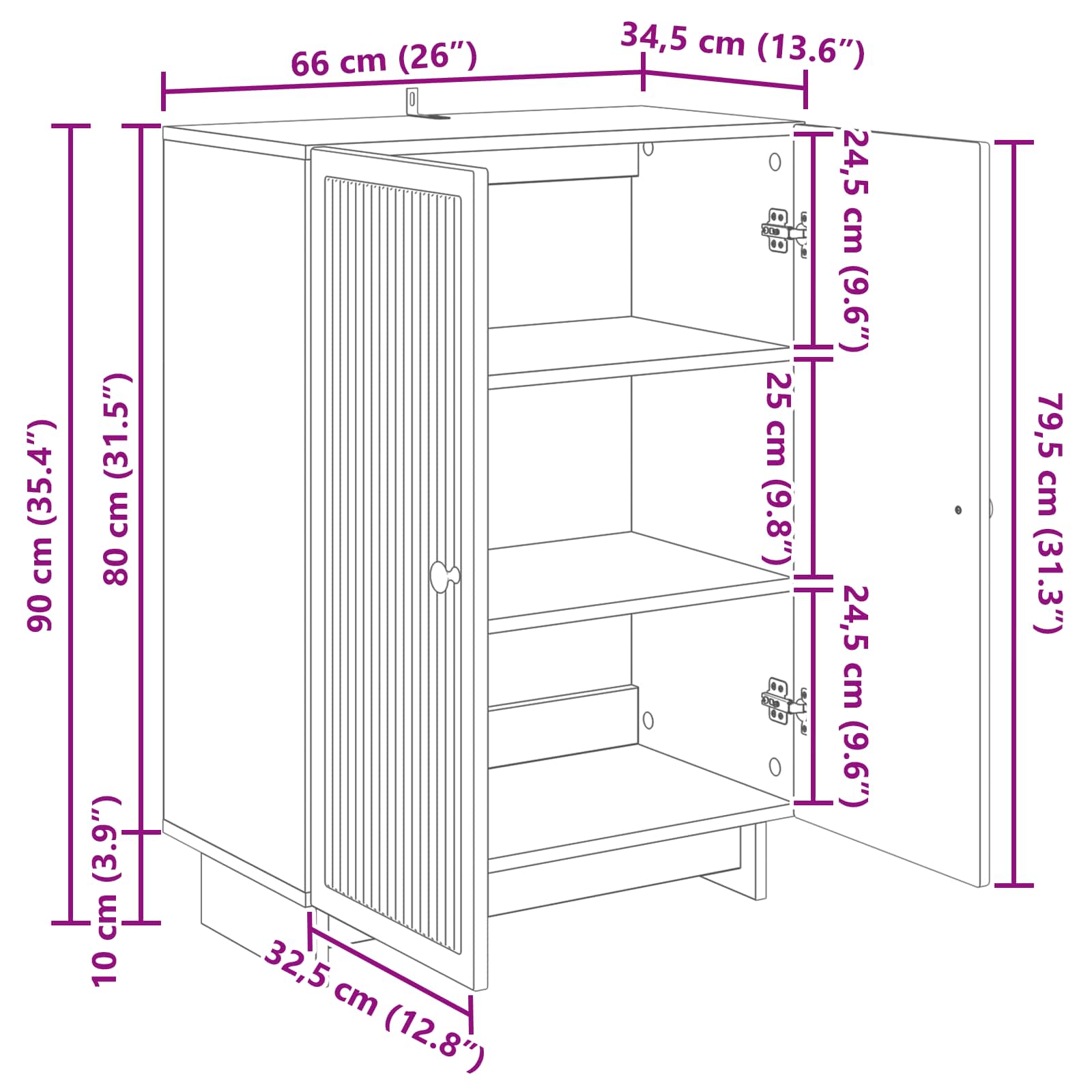 • Yleiset mitat: 66 x 34,5 x 90 cm (P x L x K)