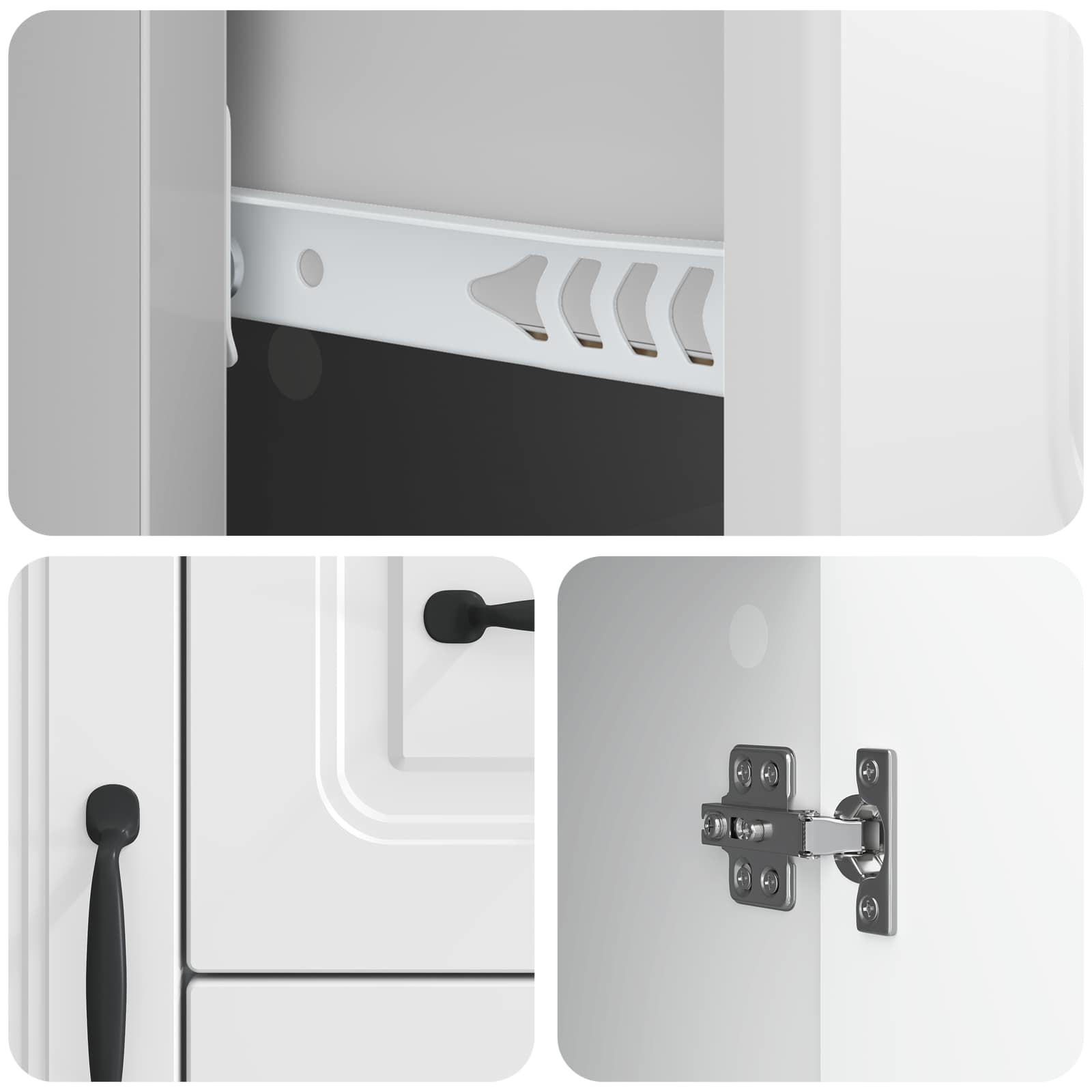 • Lisäkomponentit: Sivupöydässä on levyhyllyt ja laitelokerot, jotka tarjoavat monia säilytysratkaisuja. Sen kaarivetimet, jotka on tehty laadukkaasta metallista, takaavat helpon käytön samalla kun ne tuovat tyylikästä kontrastia puumateriaaliin. Kahvat on suunniteltu mukaviksi käyttää, yhdistäen toimivuuden ja tyylin. 90° keinusaranaovia on helppo käyttää, joten tavarat kulkevat helposti käsissäsi.