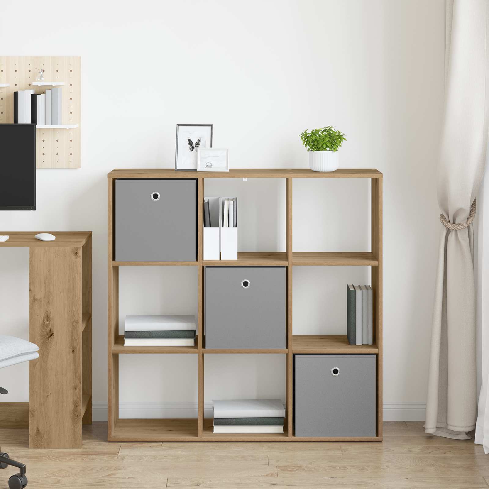 Tämä moderni sivupöytä tuo tyylikkyyttä olohuoneeseesi upealla muotoilullaan ja ajattomalla viehätyksellään. Sen siisti muotoilu esittelee puhtaita linjoja, mikä tekee siitä esteettisesti miellyttävän ja toimivan ratkaisun, joka sulautuu nykyaikaiseen sisustukseen. Se on tarkoitettu niille, jotka arvostavat minimalismia mutta tarvitsevat käytännöllisyyttä; tämä sivupöytä tarjoaa tyylikkään vaihtoehdon kirjojen ja sisustustavaroiden säilyttämiseen ja luo mukautuvan ympäristön. Sen kestävä ja vahva tekninen puu tukee runsaasti säilytystilaa pitäen samalla huomaamattoman läsnäolon.]},{