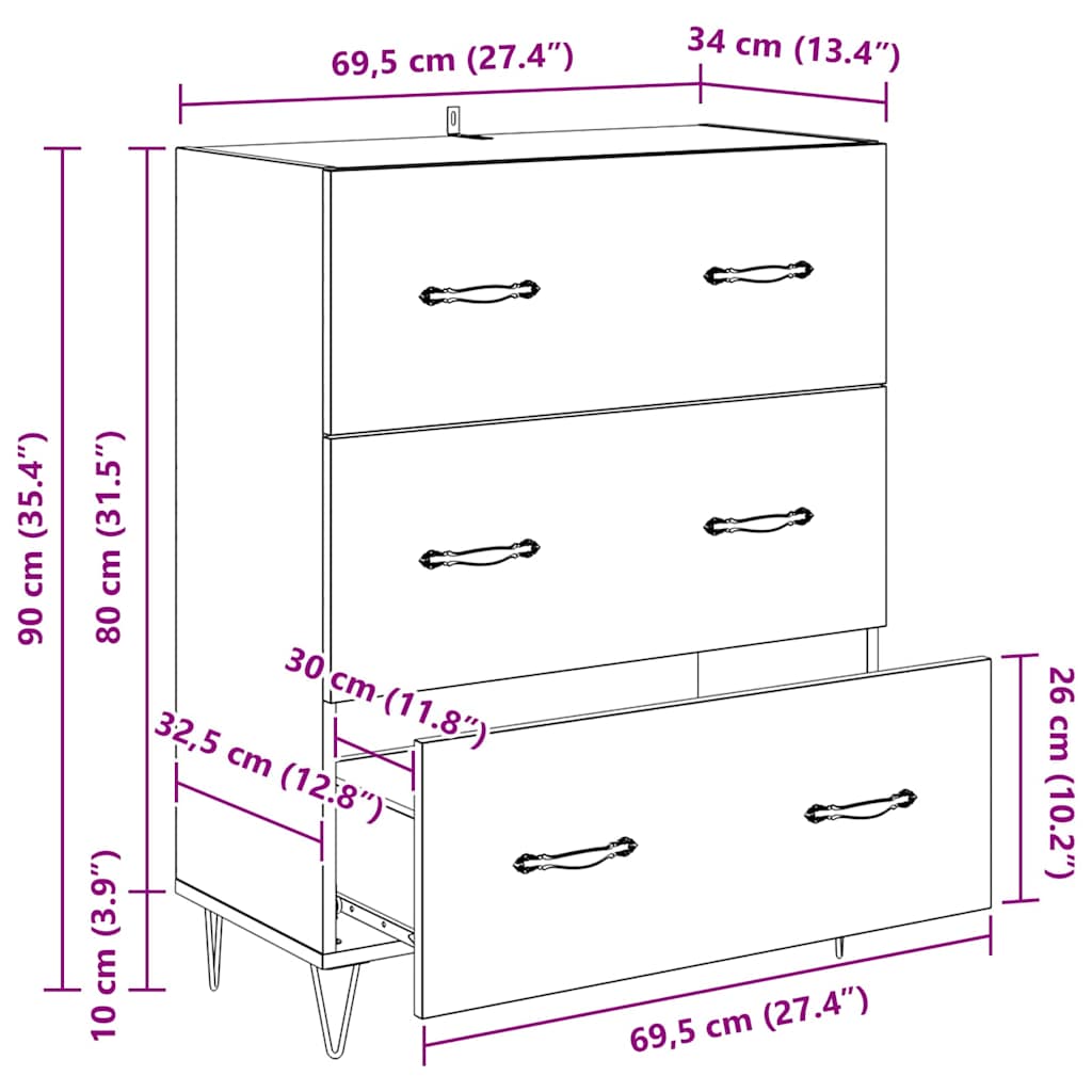 • Yleiset mitat: 69,5 x 34 x 90 cm (P x L x K)