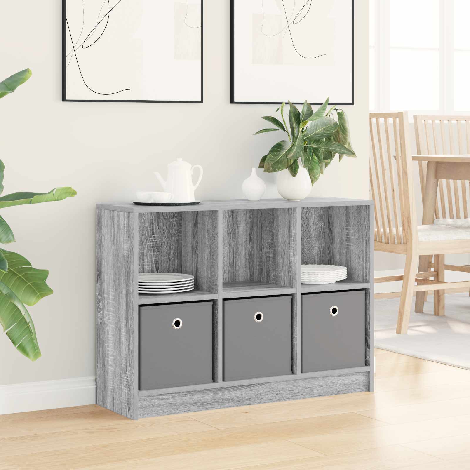 • Tilavat hyllyt: Levyt, jotka tarjoavat runsaasti tilaa kirjoille, koristeille ja muille tarpeellisille esineille. Toimiva ratkaisu, joka pitää asiat järjestyksessä tyylillä.