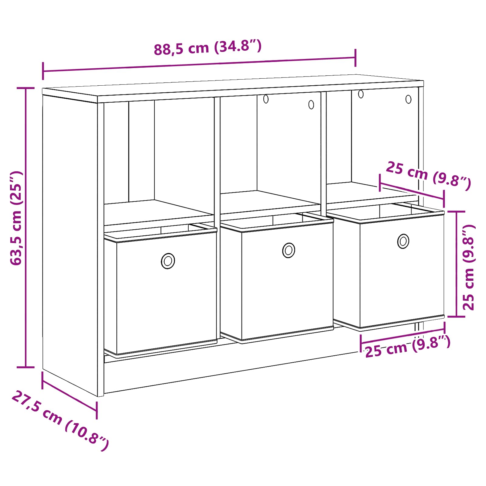 • Yleiset mitat: 88,5 x 27,5 x 63,5 cm (L x S x K)