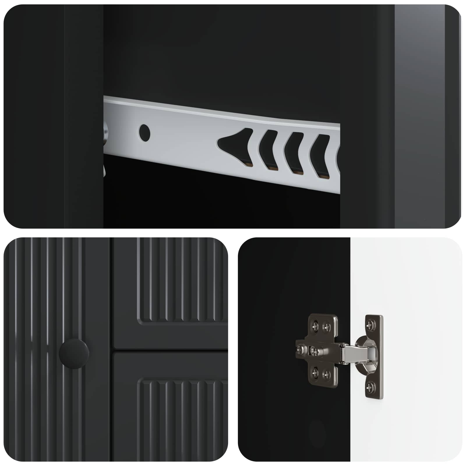 • Yhdessä tulevat osat: Tässä sivupöydässä on kestävät rullalaatikot, käytännölliset levyhyllyt ja tukevat 90° keinutaroimet, jotka on kaikki valmistettu luotettavasta teknisestä puusta. Siitä löytyvät tyylikkäät nuppikahvat, jotka helpottaa pääsyä, parantaen käyttömukavuutta.