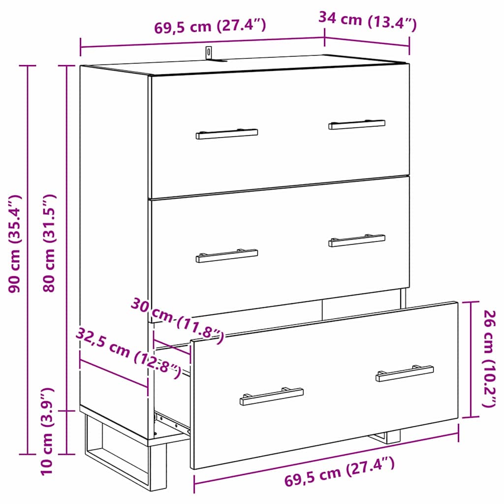Sivupöytä laatikon kanssa Musta tammi. 69,5 x 34 x 90 cm