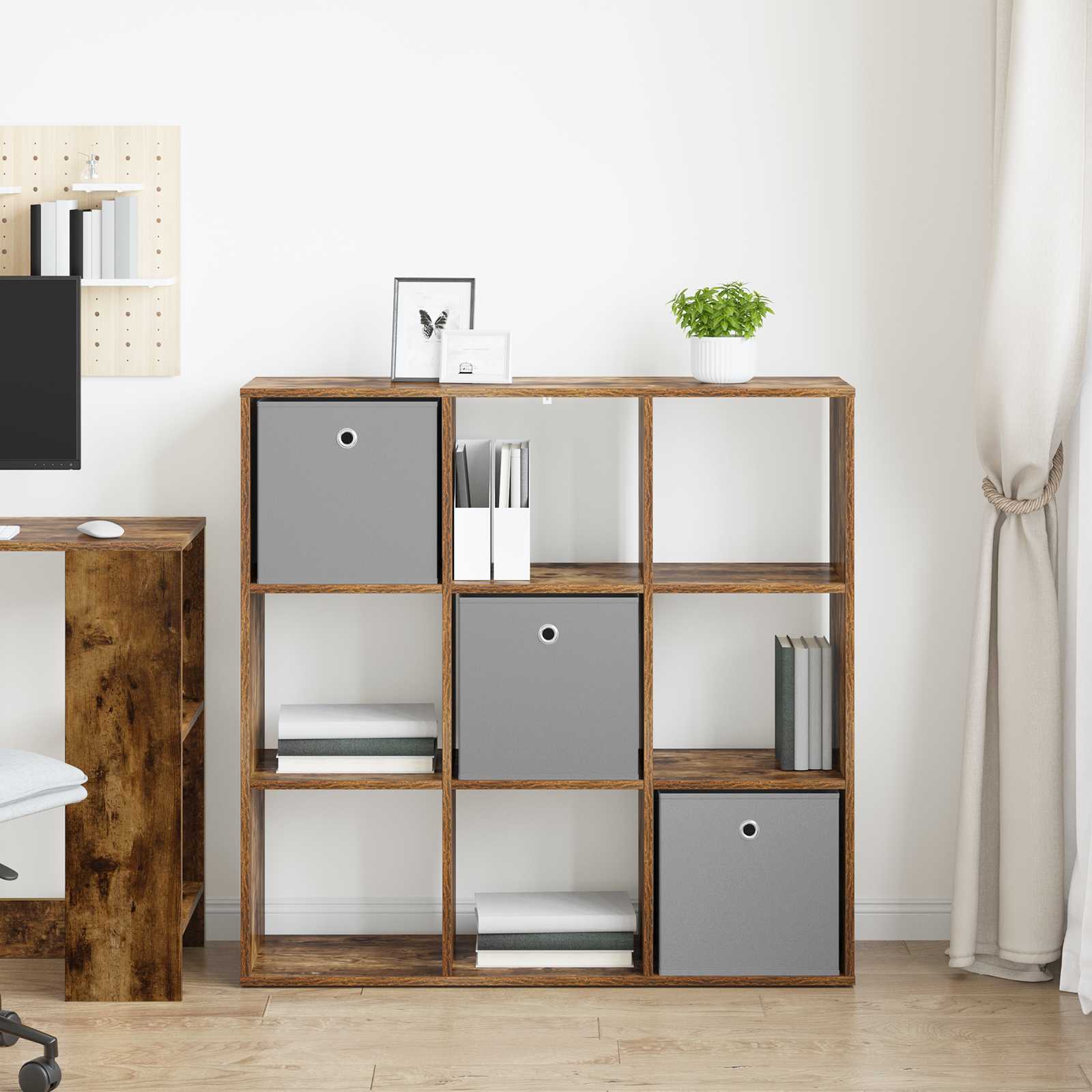 Tämä moderni sivupöytä tuo tyylikkyyttä olohuoneeseesi upealla muotoilullaan ja ajattomalla viehätyksellään. Sen siisti muotoilu esittelee puhtaita linjoja, mikä tekee siitä esteettisesti miellyttävän ja toimivan ratkaisun, joka sulautuu nykyaikaiseen sisustukseen. Se on tarkoitettu niille, jotka arvostavat minimalismia mutta tarvitsevat käytännöllisyyttä; tämä sivupöytä tarjoaa tyylikkään vaihtoehdon kirjojen ja sisustustavaroiden säilyttämiseen ja luo mukautuvan ympäristön. Sen kestävä ja vahva tekninen puu tukee runsaasti säilytystilaa pitäen samalla huomaamattoman läsnäolon.]},{