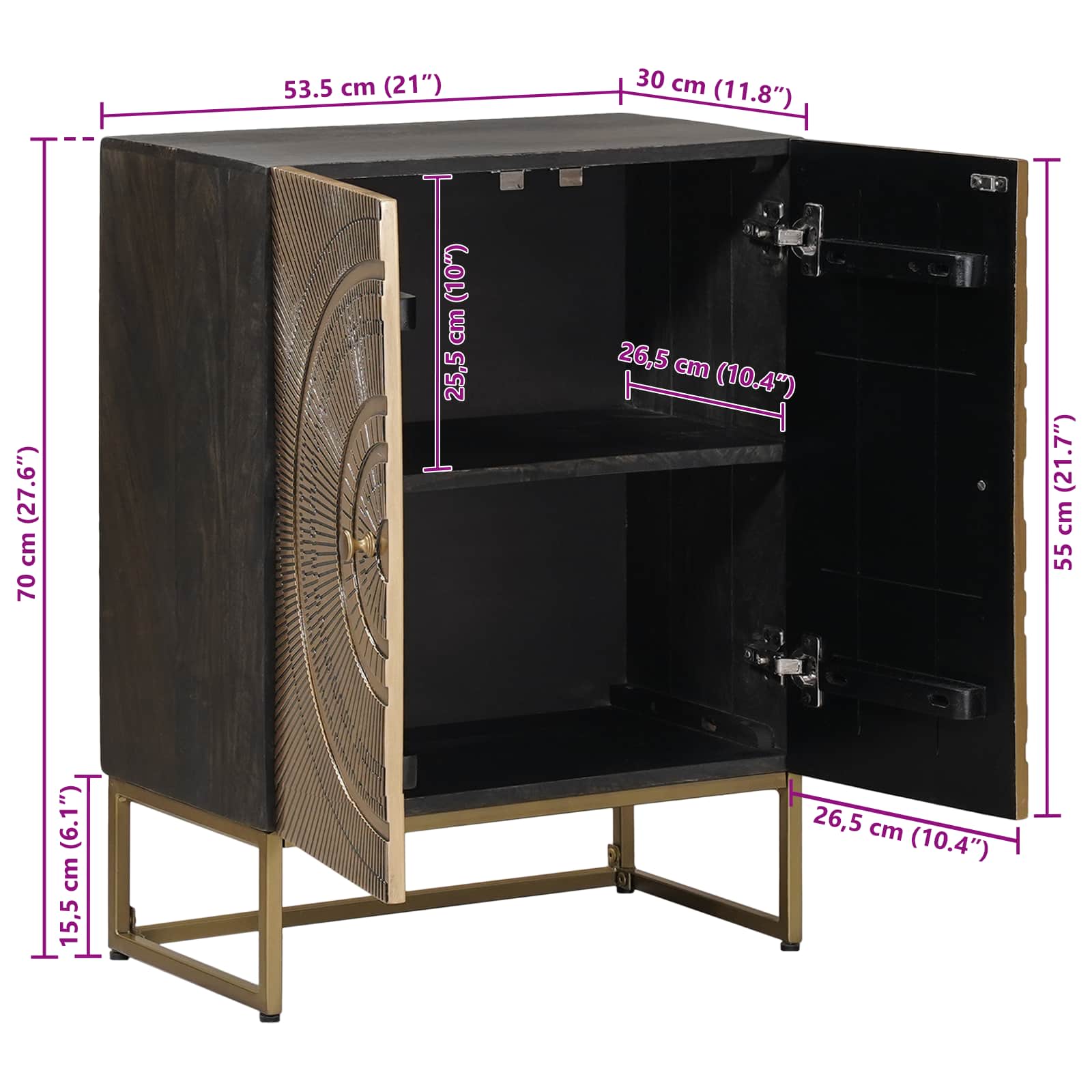 • Vain sisäkäyttöön: Tämä sivupöytä on tarkoitettu käytettäväksi sisätiloissa, ja se tuo monia etuja olohuoneessa tai ruokailuhuoneessa, missä säilytys on tärkeää.