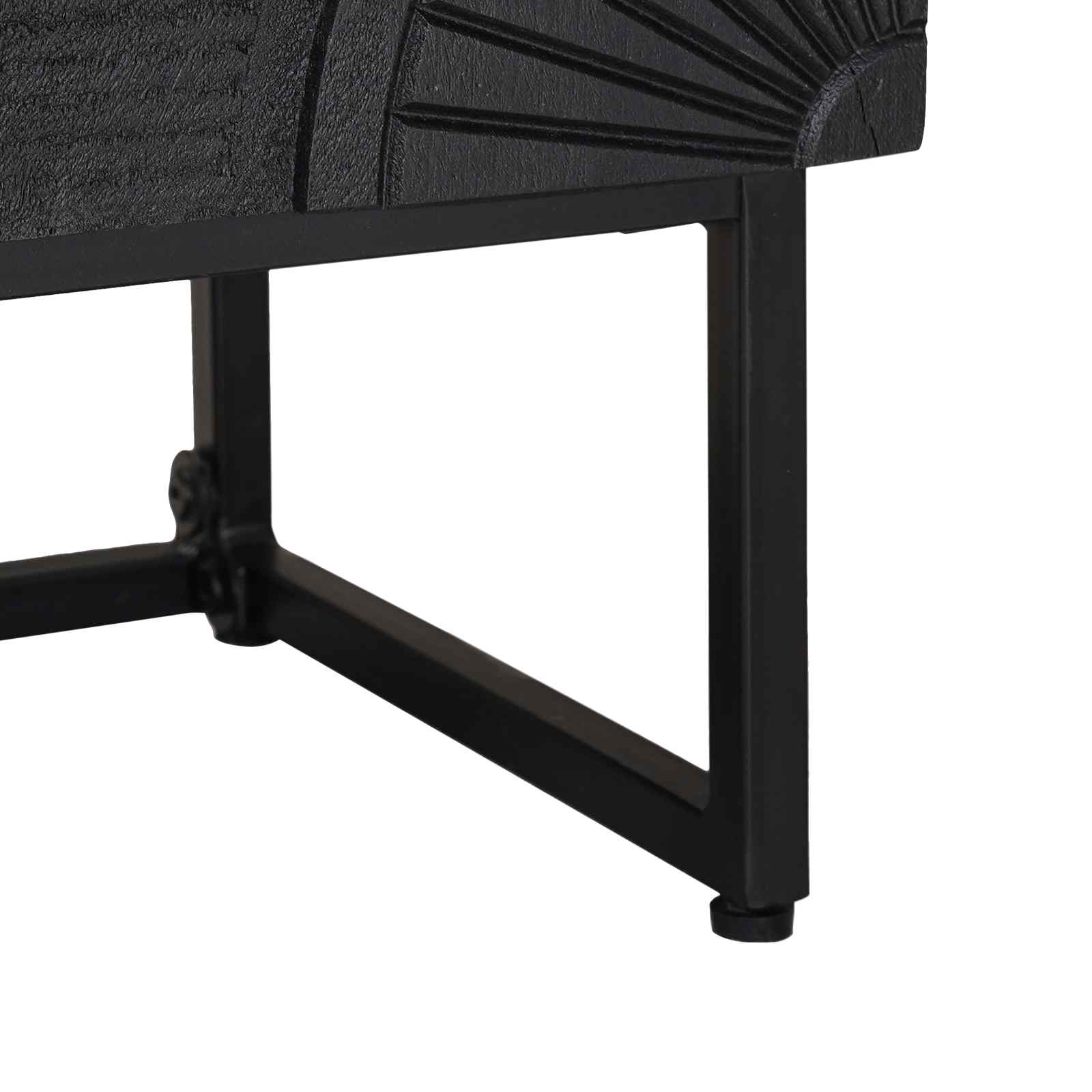 • Materiaalit: Valmistettu kestävästä yhdistelmästä massiivista mangopuuta ja teknistä puuta, mikä takaa pitkäikäisen huonekalun, joka kestää arkea, samalla tarjoamalla tyylikkään luonnollisen ilmeen. Mangopuun rikas rakenne ja syyt antavat sivupöydälle ainutlaatuista viehätystä, joten se on käytännöllinen ja kaunis lisä mihin tahansa olohuoneeseen.