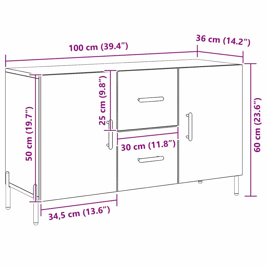 Sivupöytä Musta Tammi 100x36x60 cm Sekä Keinotekoinen Puuta