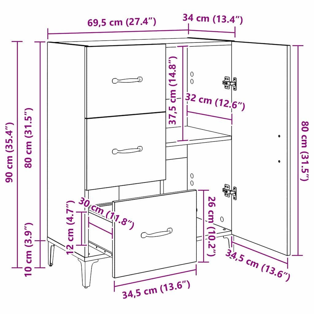 Kestävä tekninen puu: Ensiluokkaisesta teknisestä puusta rakennettu sivupöytä on tehty kestämään. Materiaali tuo vakauden ja lujuuden, joten se on luotettava lisä kotiisi. Sen lämmin ruskea sävy tuo mukavasti lämpöä, parantaen huonekalun yleistä viehätystä ja luoden kauniin tasapainon kestävyyden ja esteettisen arvon välillä. Upotettu ovimalli: Sileiden, upotettujen ovien myötä tämä sivupöytä on minimalistisen tyylin ykkönen. Ovissa on helppokäyttöinen mekanismi ja satiiniviimeistely parantaa niiden ilmettä, tarjoten runsaasti tilaa henkilökohtaisille esineille, astioille, liinavaatteille tai mille tahansa muulle, jonka haluat pitää järjestyksessä. Runsaasti säilytysratkaisuja: Tässä sivupöydässä on paljon laatikoita ja osastoja, jotka kattavat erilaiset säilytystarpeet. Laatikot tarjoavat kätevän tavan pitää pienet esineet tallessa, kun taas tilavat osastot sopivat suuremmille tavaroille, pitäen kaiken siististi yhdessä. Toiminnallinen tyyli: Modernilla tyylillä suunniteltu sivupöytä istuu täydellisesti muotitietoiseen kotiin, jossa yksinkertaiset linjat korostavat käytännöllisyyttä. Sen huomaamaton eleganssi sopii useisiin sisustustyyleihin, tehden siitä monikäyttöisen huonekalun, joka täydentää nykyaikaisia sisustuksia. Helppo huolto ja kokoaminen: Kokoaminen on tehty helpoksi, tarvitaan vain ruuvimeisseli ja yksi kaveri, mikä tekee asennuksesta nopeaa. Kun se on koottu, sen pintaa on helppo pitää puhtaana pyyhkimällä kuivalla liinalla, ja hankautuvia materiaaleja tai voimakkaita kemikaaleja tulisi välttää. Tämä helppo hoito pitää sen kauniina ja sopii elämääsi vaivatta.