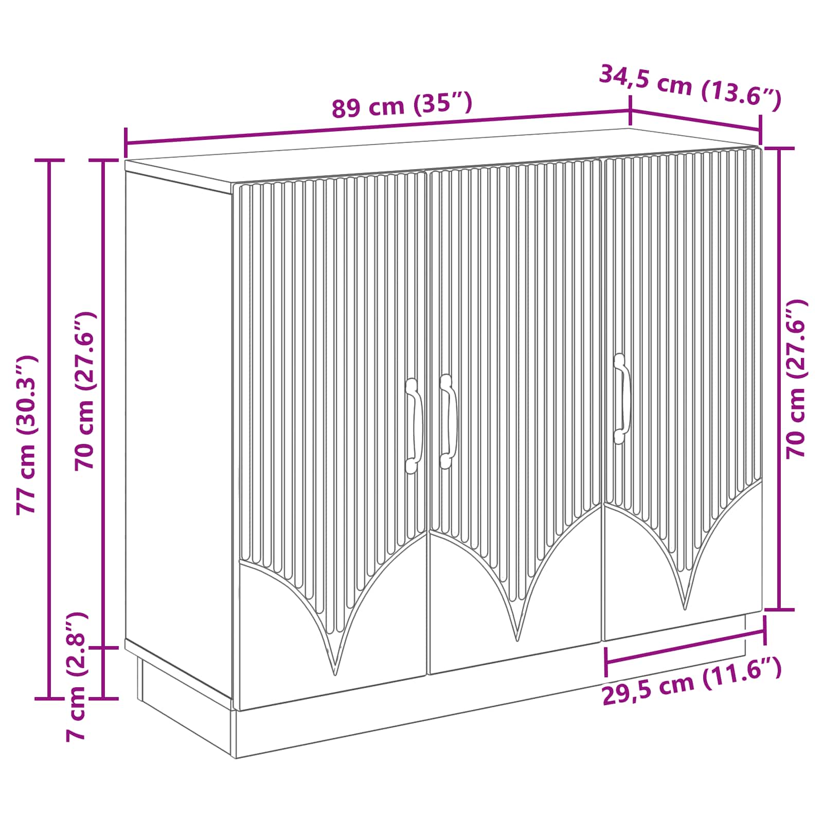 • Yleiset mitat: 89 x 34,5 x 77 cm (P x L x K)