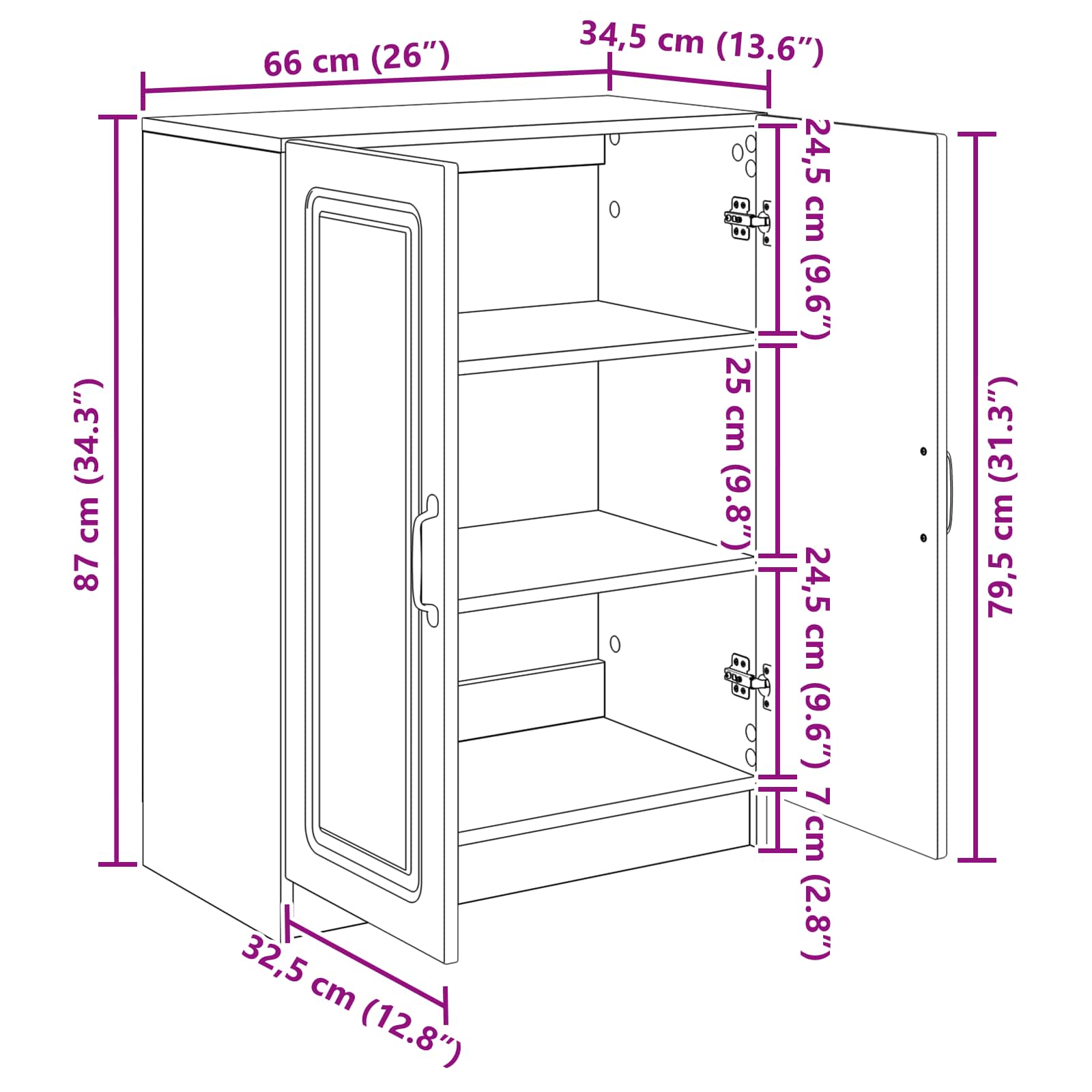 • Yleiset mitat: 66 x 34,5 x 87 cm (P x L x K)