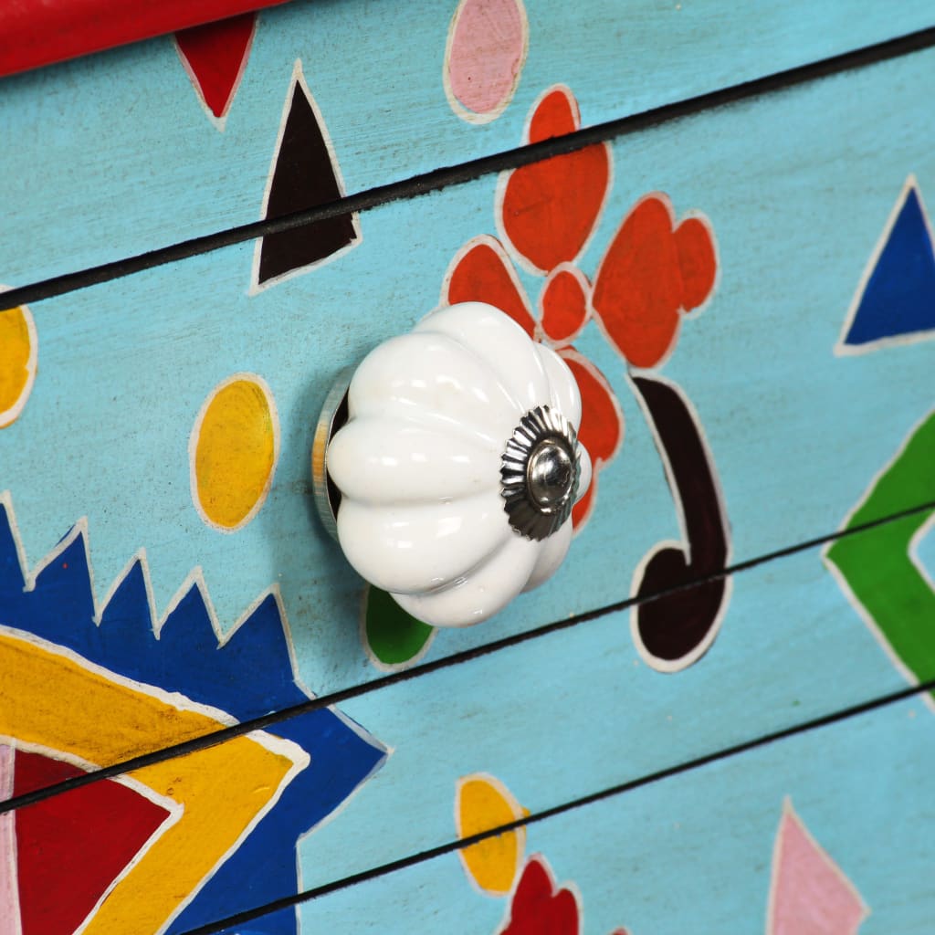 Tämä ainutlaatuinen, kaunis sivupöytä lisää ripauksen väriä ja on katseenvangitsija olo- tai makuuhuoneeseesi. Sen upean suunnittelun ansiosta, tästä käsinmaalatusta sivupöydästä tulee taatusti keskustelunaihe, kun kutsut kylään vieraita.
