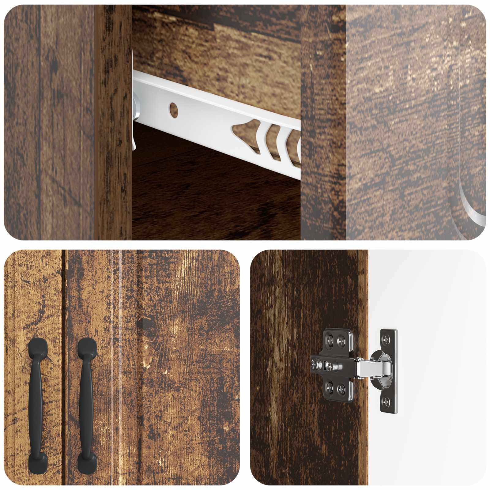 • Included Components: Sivupöydässä on useita levyhyllyjä, jotka tarjoavat paljon tilaa tavaroillesi. Metalliset vetimet tekevät avaamisesta ja sulkemisesta helppoa, ja 90° keinusaranaovet tarjoavat vaivattoman pääsyn säilytettävään. Jokainen osa on suunniteltu parantamaan käyttökokemusta yhdistäen käytettävyyden ja tyylin.