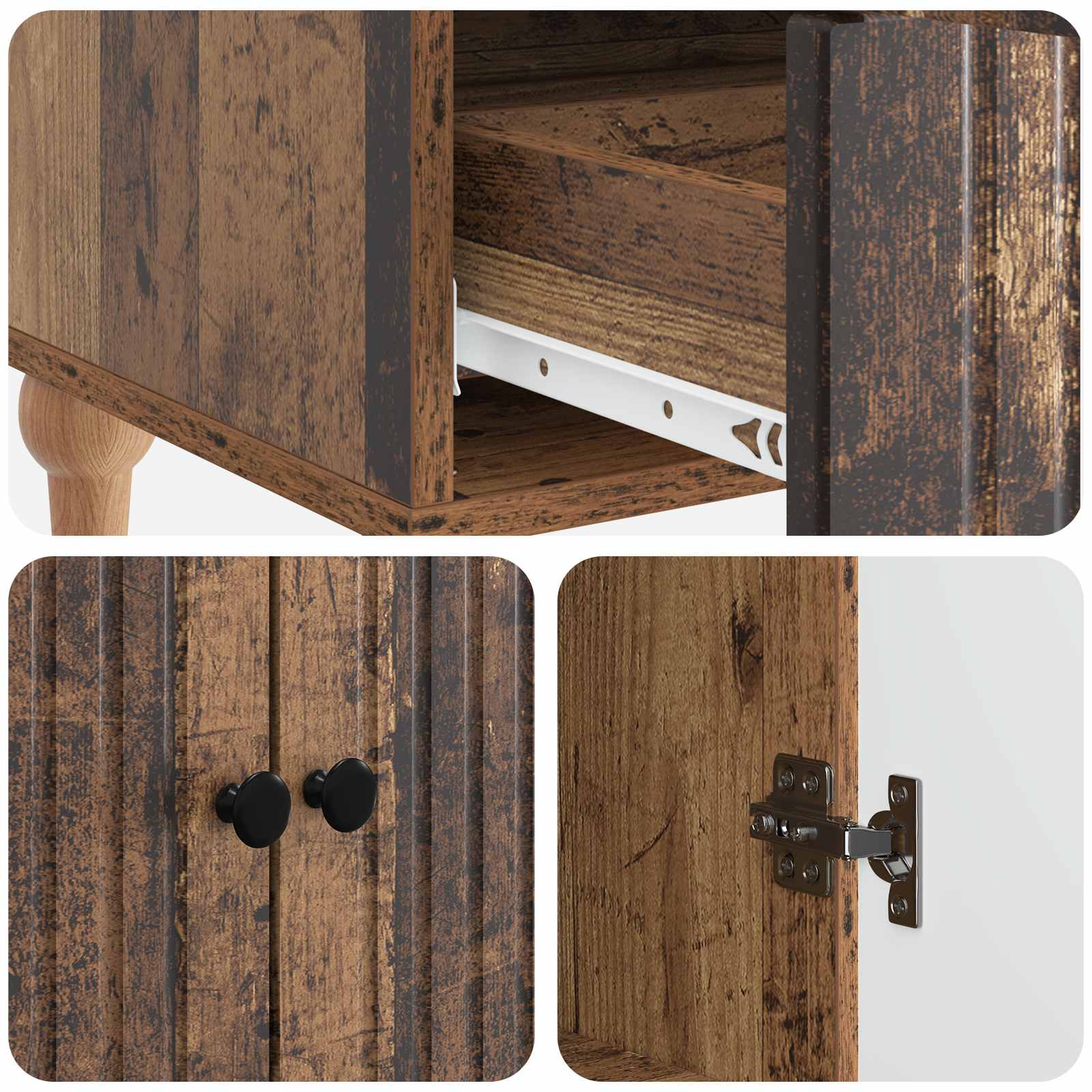 • Toiminnalliset ominaisuudet Tähän sisältyy teknisestä puusta valmistetut ovet tyylikkäällä 90° keinusaranaovella sekä käytännölliset ulosrullattavat laatikot, jotka varmistavat sujuvan toiminnan. Nää komponentit parantaa käyttäjäkokemusta lisäämällä mukavuutta ja käytännöllisyyttä jokapäiväisiin säilytustehtäviin.