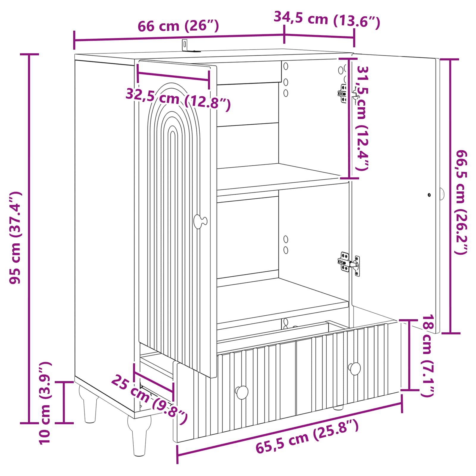 • Monikäyttöinen olohuoneen viehätys Tää kaluste sopii täydellisesti eri ympäristöihin, ja se istuu vaivattomasti niin olohuoneisiin, ruokailu- kuin toimistotiloihin. Sen monipuolinen design varmistaa, että se täydentää erilaisia käyttötarkoituksia ja asetteluja, toimiessaan ensisijaisena säilytysratkaisuna tai koristekonsolina.