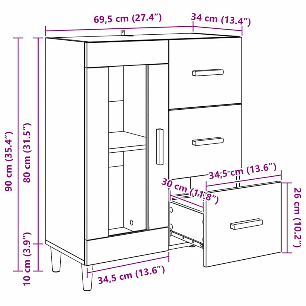• Yleiset mitat: 69,5 x 34 x 90 cm (P x L x K)