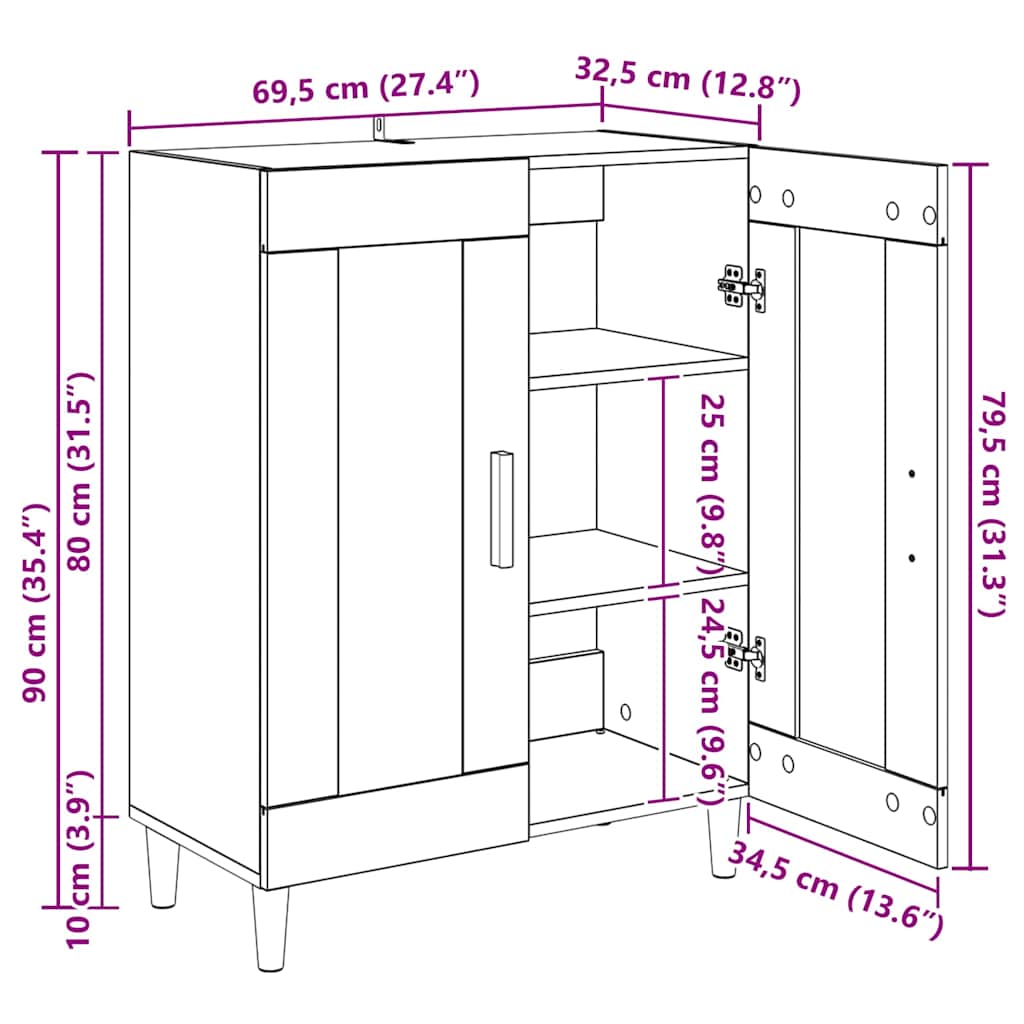 Sivupöytä Vanha Puu 69,5 x 34 x 90 cm Tekninen puu