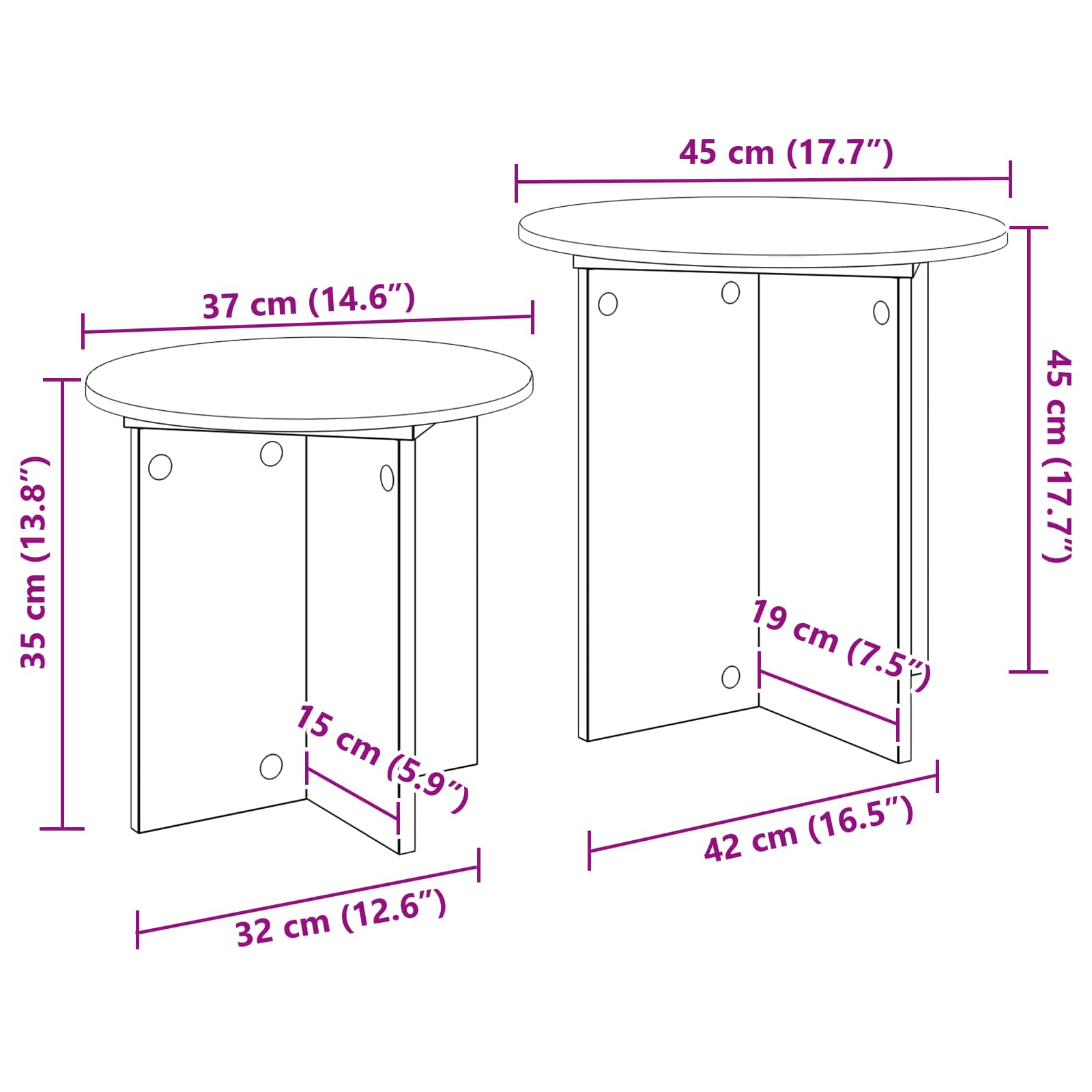 Sivupöytäsetti 2 pcs Savustettu Tammi Käsitelty puu