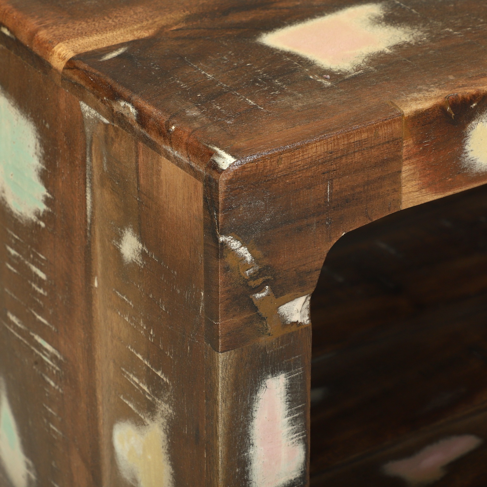 Tämä sohvapöytä, tehty kestävästä kierrätetystä puusta, yhdistää rustiikkisen viehätysvoiman käytännöllisyyteen, tehden siitä mahtavan lisän mihin tahansa olohuoneeseen. Sen moniväriset sävyt ja kulunut viimeistely kiinnittävät huomiota ja tarjoavat hyvän paikan kahvin, kirjojen ja koristeiden esille laittamiseen, kirkastaen tilaa.