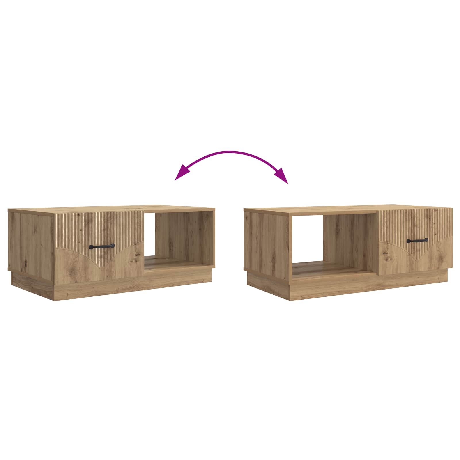 • Kestävä tekninen puu: Sohvapöytä on valmistettu kestävästä teknisestä puusta, joka on tunnettu hienosta pinnastaan. Tää materiaali varmistaa, että pöytä kestää päivittäistä käyttöä ja näyttää hyvältä, joten se on mahtava valinta aktiivisiin koteihin.
