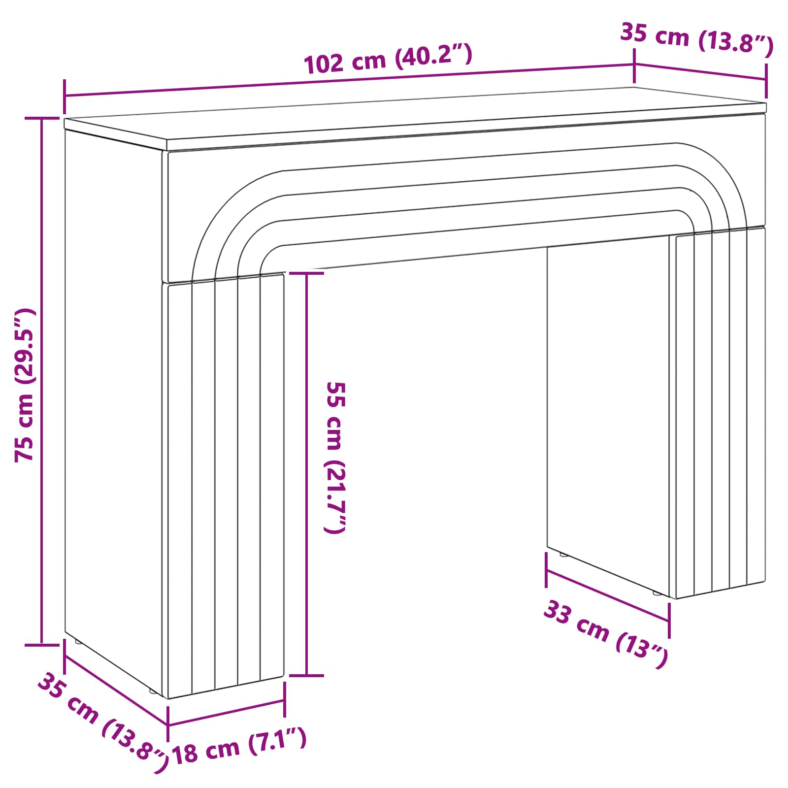 • Yleiset mitat: 102 x 35 x 75 cm (P x L x K)