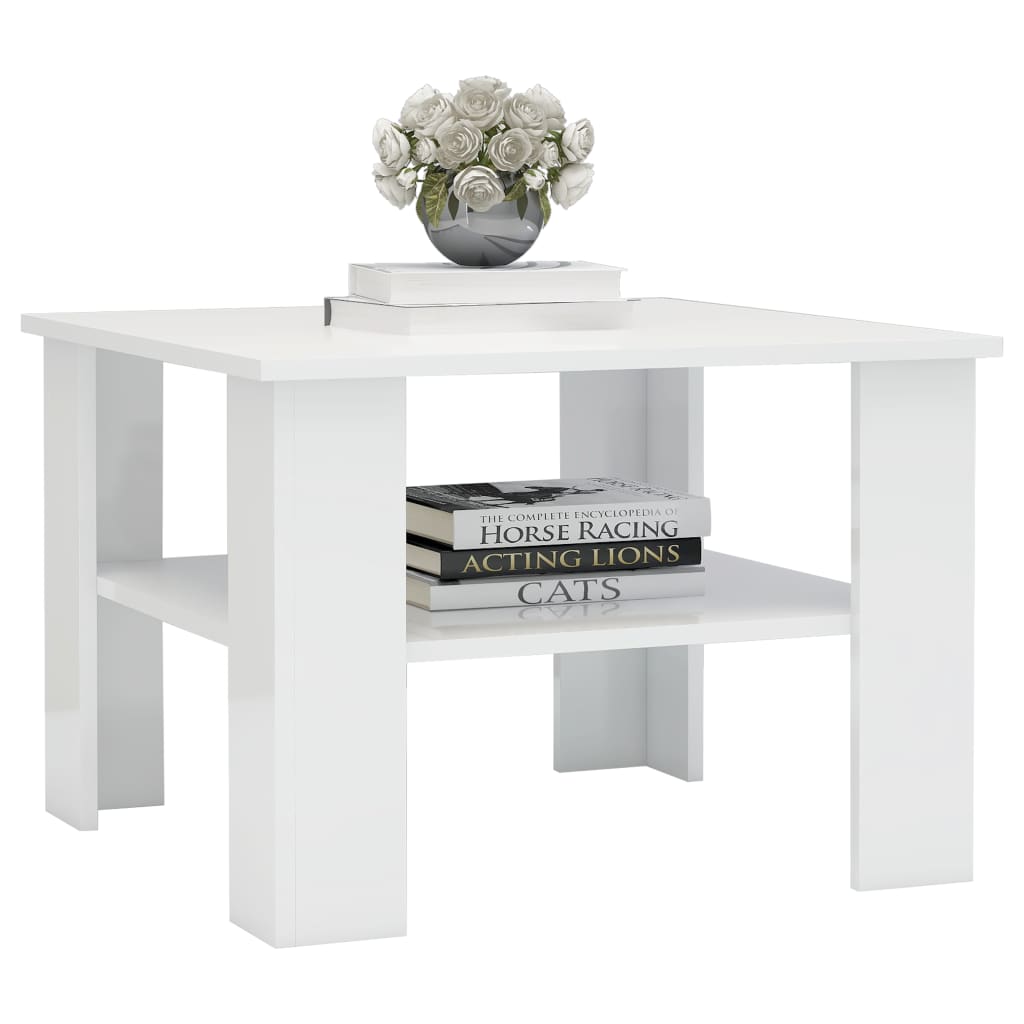 Sohvapöytä korkeakiilto valkoinen 60x60x42 cm tekninen puu