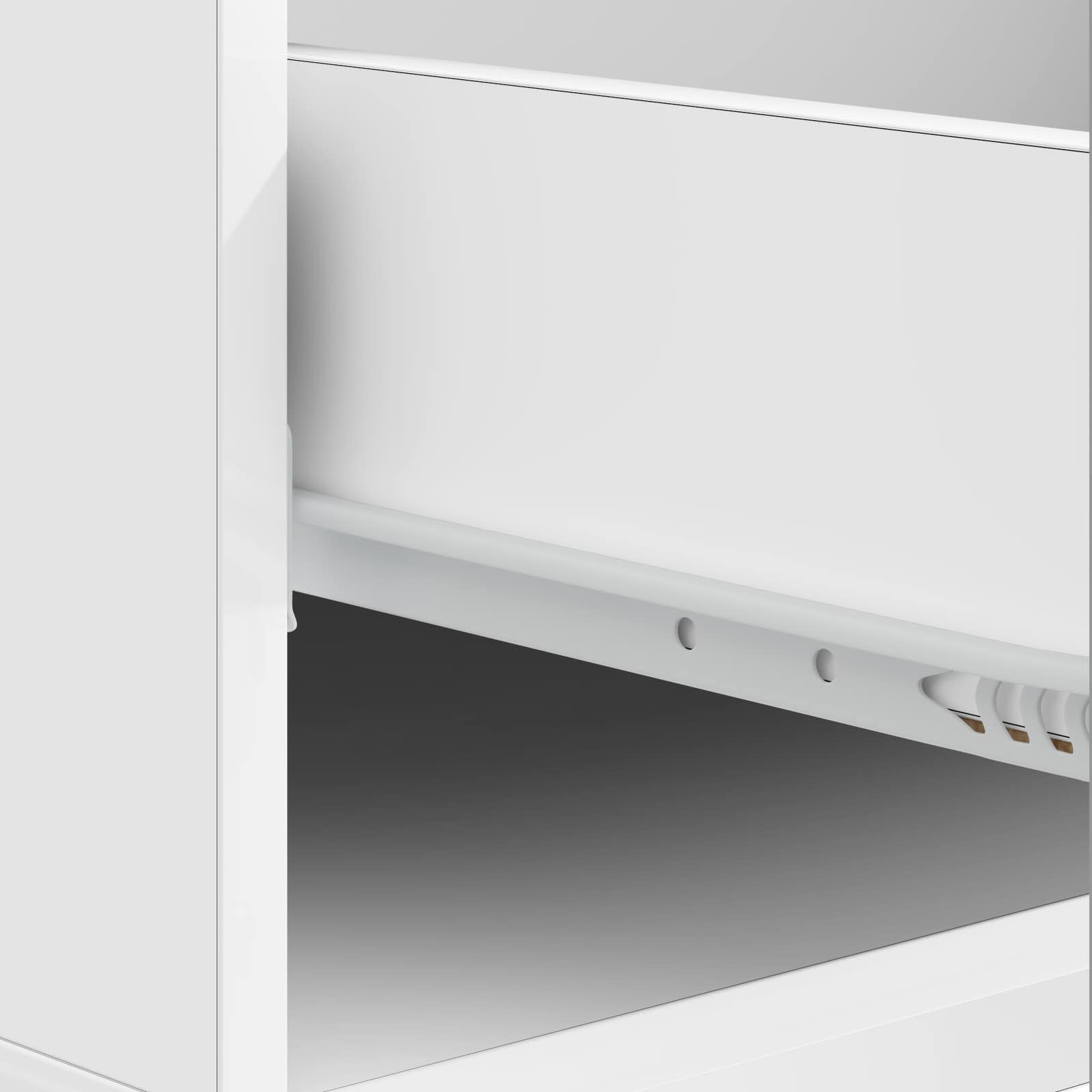 • Integroitu säilytys Runsasta säilytystilaa löytyy useista lokeroista ja suunnitelmallisista laatikoista, jotka on tehty kestävästä teknisestä puusta. Nupit tekevät tavaroiden löytämisestä helppoa. Säilytä lehdet, kaukosäätimet ja muut pienet tavarat helposti ja huomaamattomasti. Suunnittelu on täydellinen sekä minimalisteille että organisoiduille tyypeille.