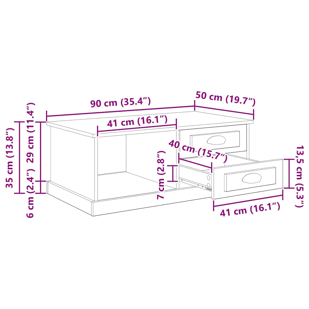 Sohvapöytä Musta tammi. 90 x 50 x 35 cm Tekninen puu