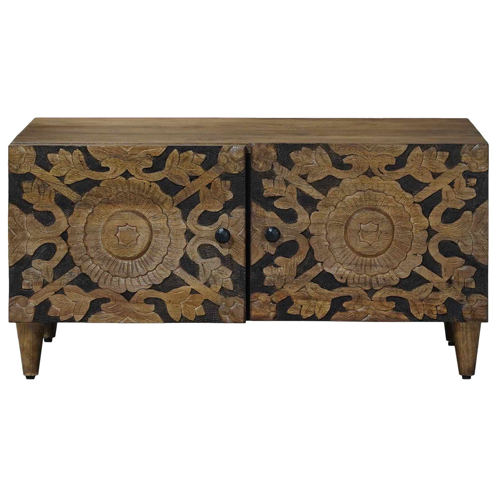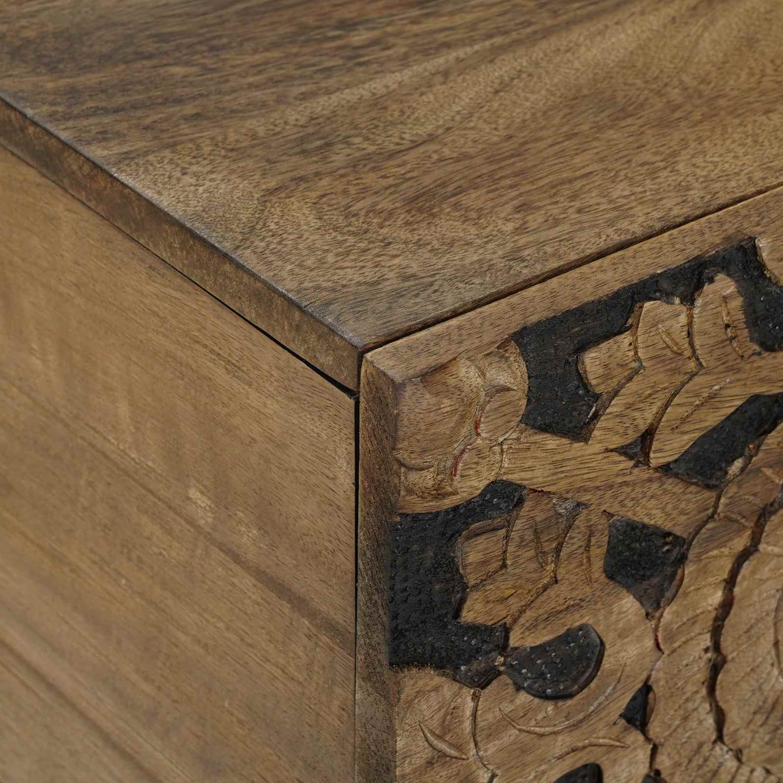 Tämä upea mangopuusta valmistettu kahvipöytä yhdistää toiminnallisuuden ja kauneuden. Täysin huolellisesti valmistettu pöytä tuo kotiisi lämpöä ja rustiikkista viehätystä, sopien loistavasti sekä moderniin että perinteiseen olohuoneeseen. Suorakaiteen muotoinen pöytä tarjoaa runsaasti pinta-alaa koristeillesi, ja luonnolliset värit varmistavat, että jokainen pöytä on ainutlaatuinen ja henkilökohtainen.