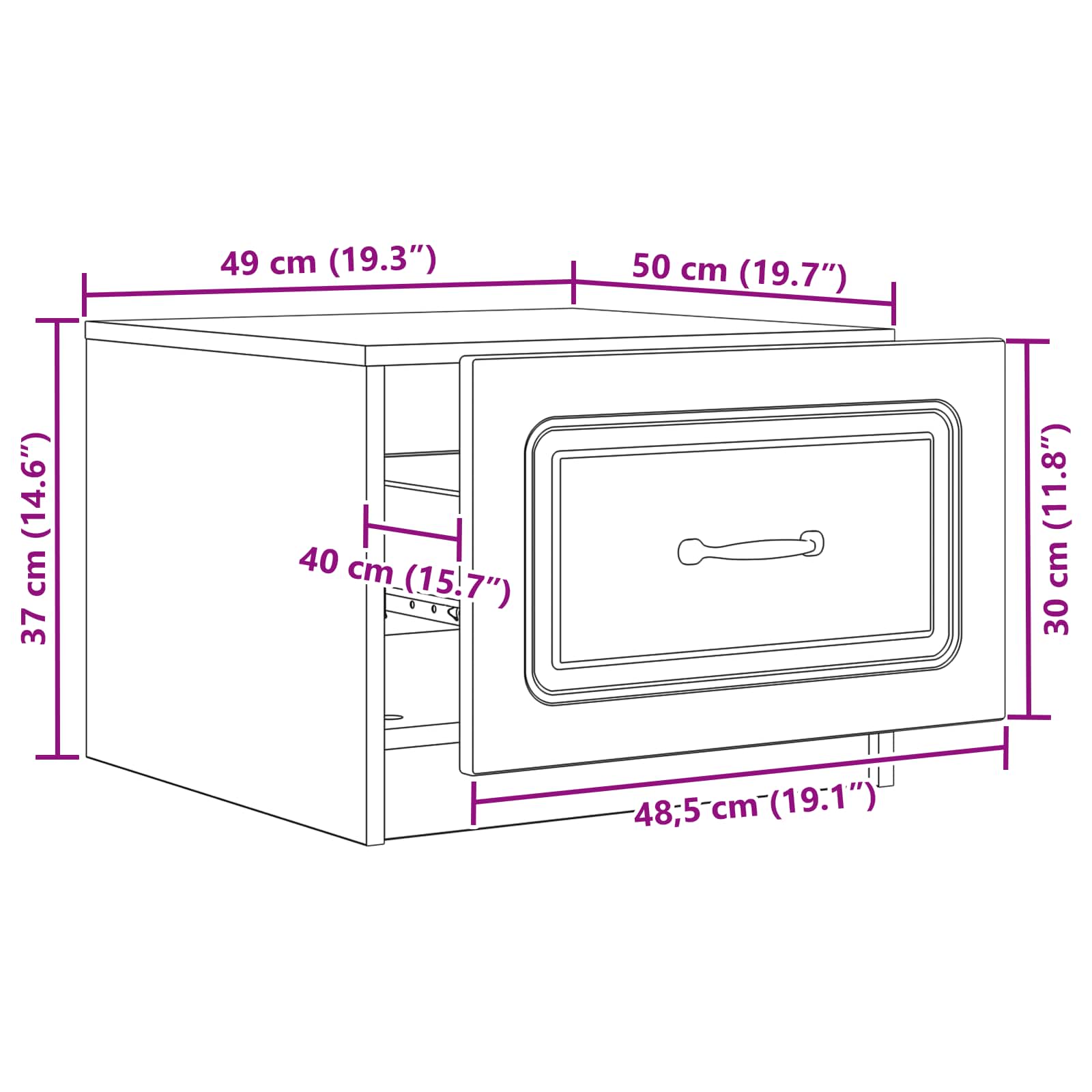 • Yleiset mitat: 49 x 50 x 37 cm (P x L x K)