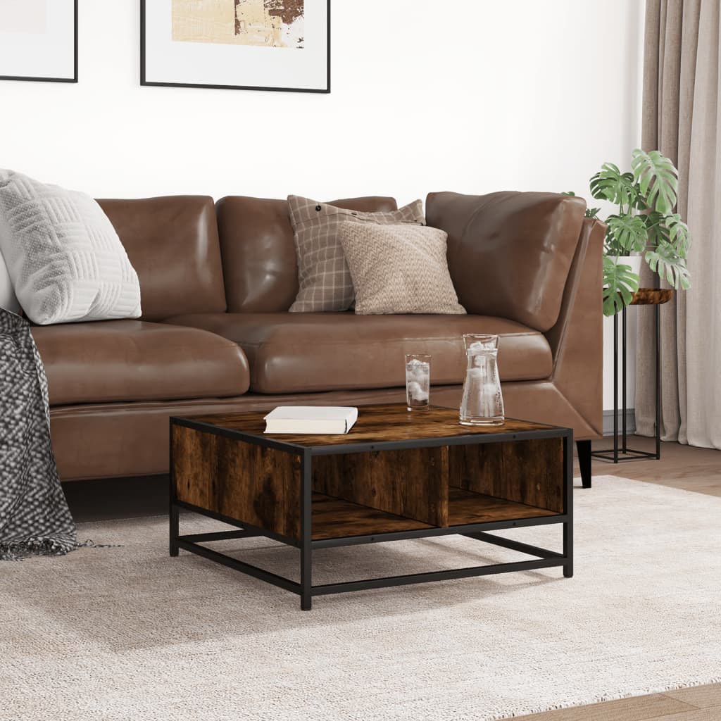 Sohvapöytä savutammi 60,5×60,5×30 cm tekninen puu ja metalli