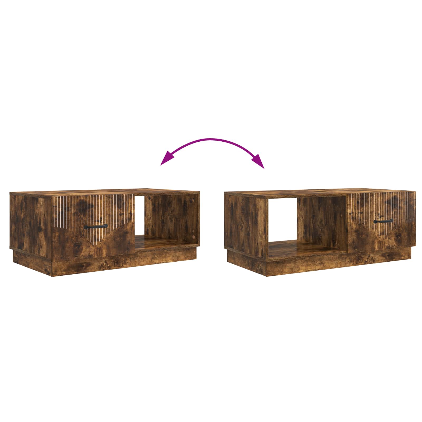 • Kestävä tekninen puu: Sohvapöytä on valmistettu kestävästä teknisestä puusta, joka on tunnettu hienosta pinnastaan. Tää materiaali varmistaa, että pöytä kestää päivittäistä käyttöä ja näyttää hyvältä, joten se on mahtava valinta aktiivisiin koteihin.