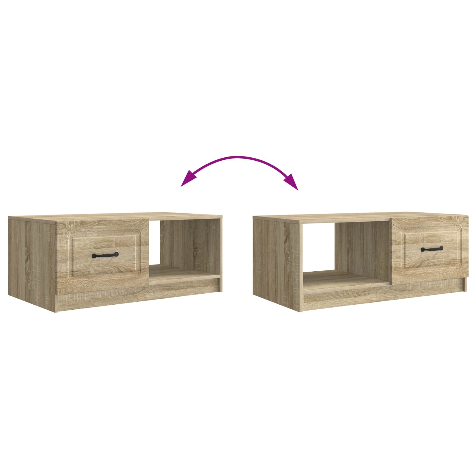 • Runsaasti säilytystilaa: Suunniteltu siistimistä ja järjestämistä varten, tämä pöytä tarjoaa runsaasti säilytystilaa, jotta tavarat pysyvät järjestyksessä ja olohuoneesi on käytännöllinen.