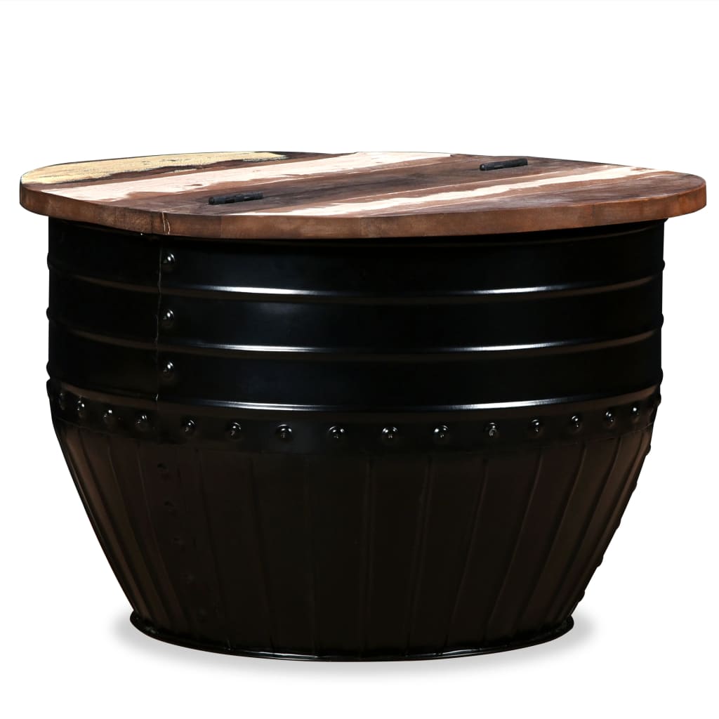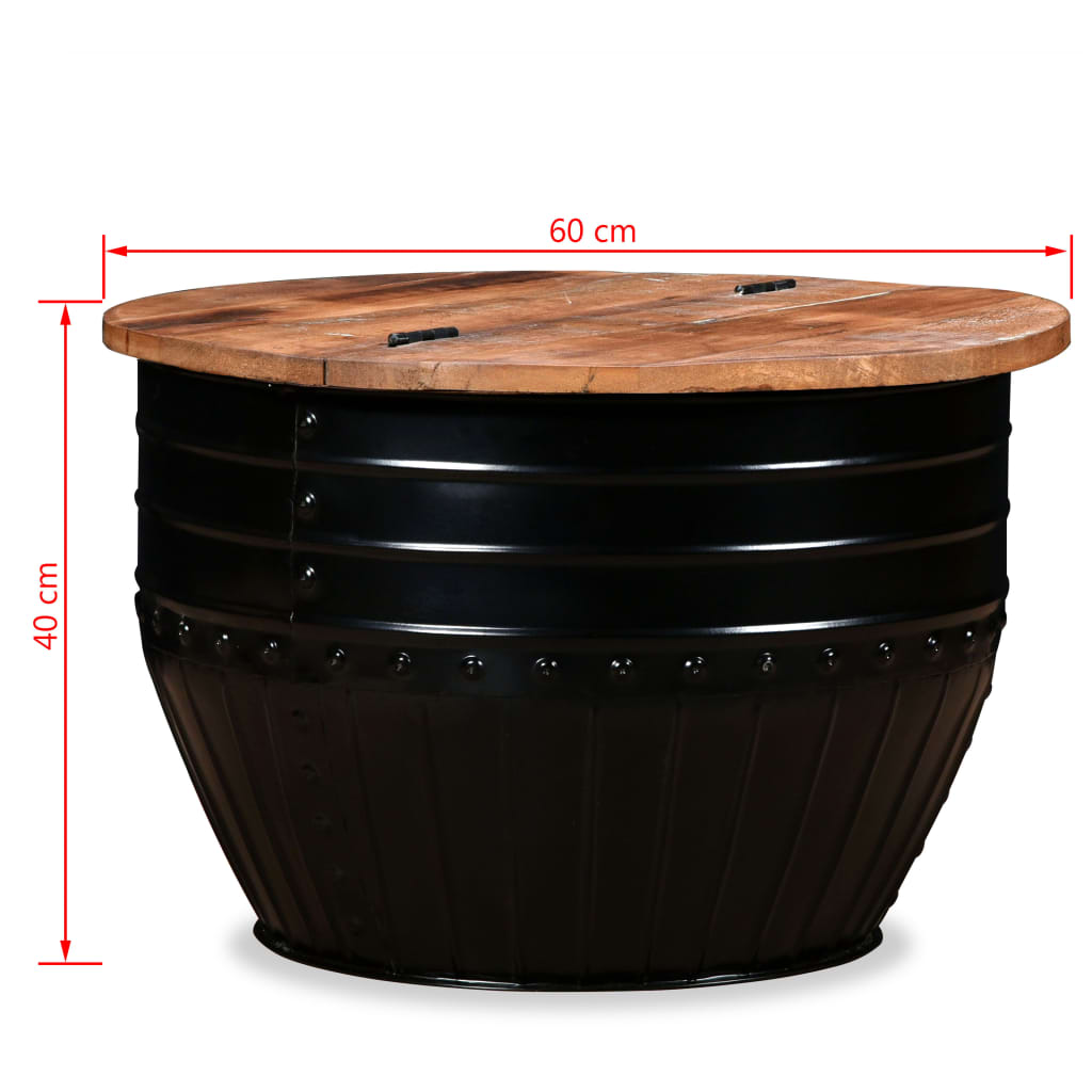 Tämä ainutlaatuinen, teollistyylinen, puusta valmistettu sohvapöytä on ajaton lisä kotiisi. Ainutlaatuinen tynnyrimuotoinen alusta antaa pöydälle teollisen tunnelman.