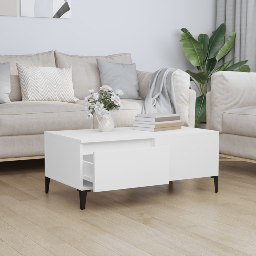 Sohvapöytä valkoinen 90x50x36,5 cm tekninen puu