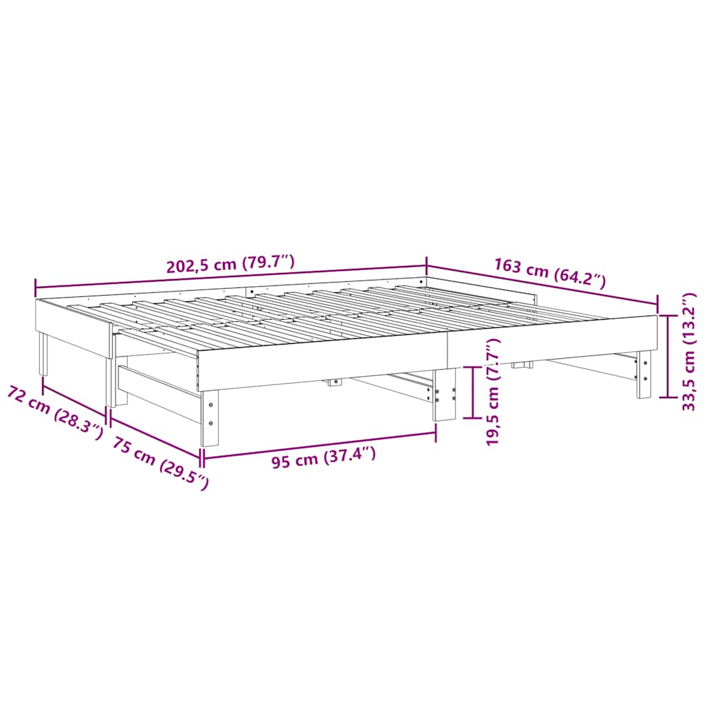 Sohvasänky ulosvedettävä 2x (80×200) cm täysi mänty